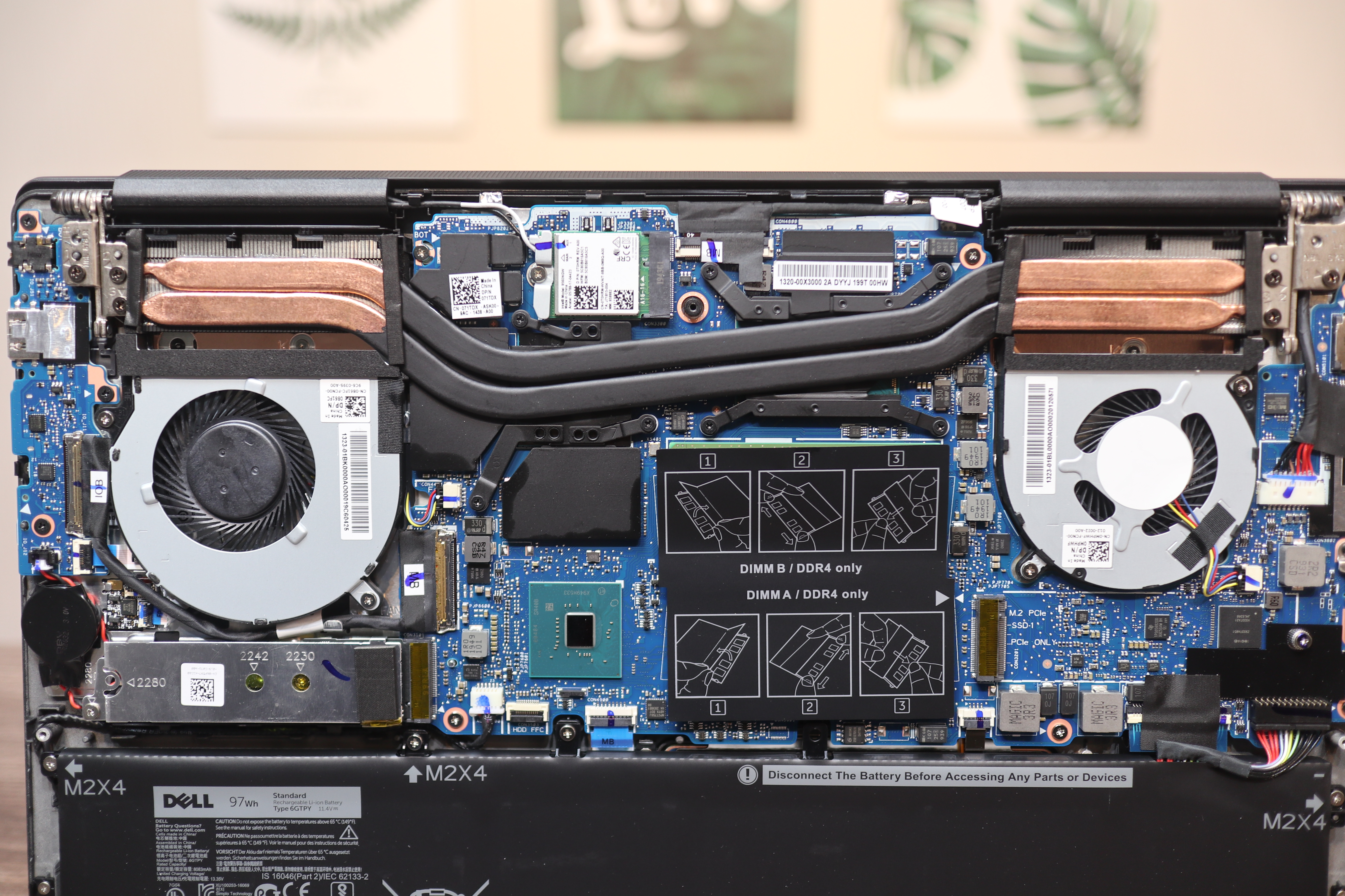 지금 보이는 이 팬과 히트파이프를 볼 수 있는 구조의 노트북이 있습니다. 저전력CPU기반에 GTX1650이 들어가는 노트북들이죠. 보시면 무게도 대충 비슷해요. 제가 판단하기에, 델 인피스론 7590의 냉각 처리 시스템은 저전력CPU에 맞는 구조로 보입니다. 발열이 심한 고성능 CPU인 i7-9750H가 들어가기에는 다소 무리가 있어 보인다는 의미죠. 저는 이것을 단점으로 굳이 지적하기 보다 "알고 구매하자" 라는 겁니다. 이 노트북은 고성능 노트북이지만 어느정도 휴대성에 포커스가 맞춰져 있습니다. 유튜브 올릴 정도의 영상편집 정도는 충분하지만 사양이 높은 게임을 지속적으로 할 때는 쿨링패드를 사용하시는 것이 좋습니다.
