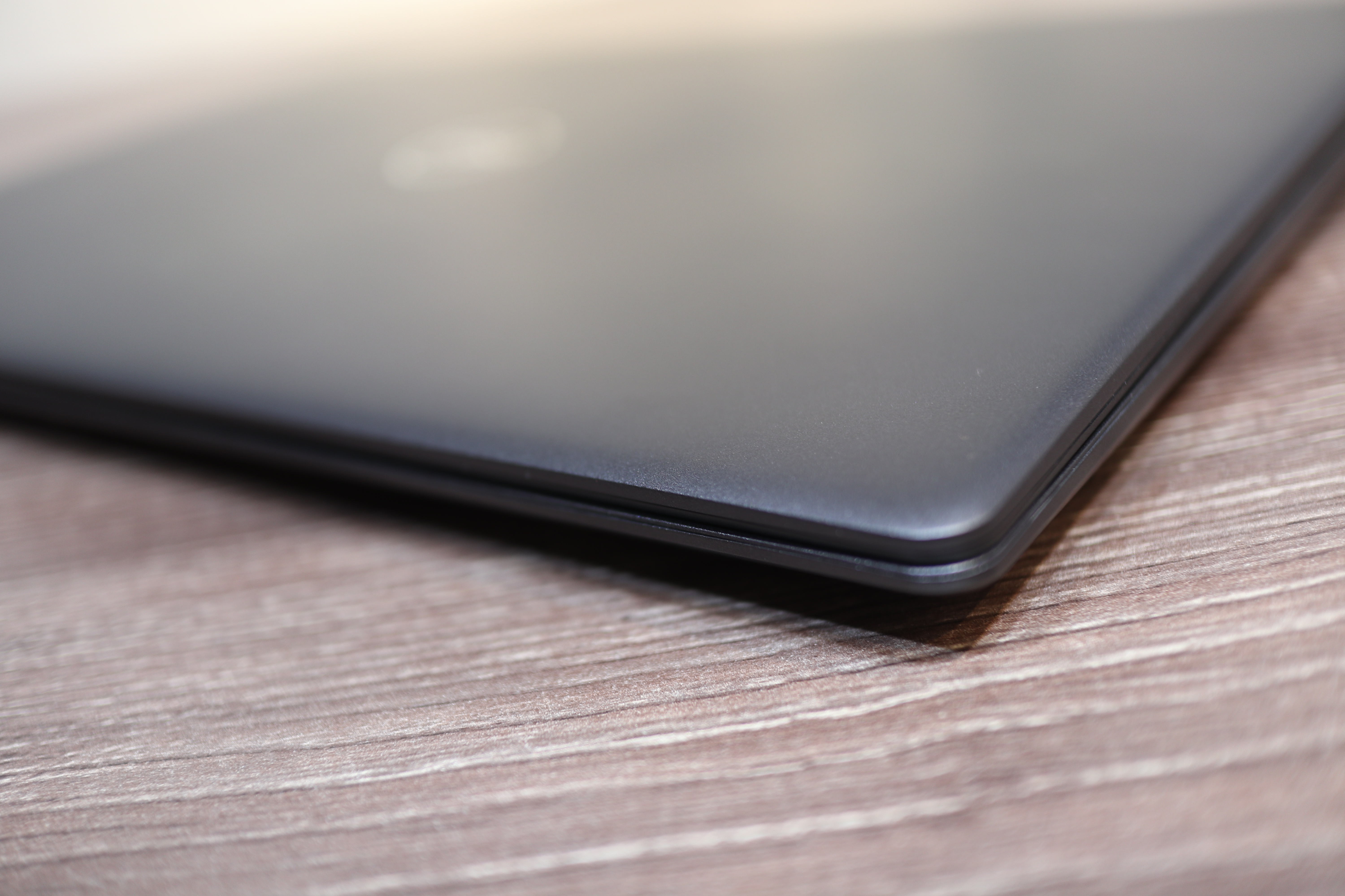 저렴한 플라스틱 느낌이 나는 "마그네슘 합금 바디" 입니다. 보시면 펄이 굉장히 예쁘게 잘 들어갔어요. 저는 마그네슘 합금 노트북에 어두운 그레이 색상과 펄의 조합은 디자인적으로 최고라고 생각합니다. 실제로 만져보면 굉장히 싼티나는 플라스틱 느낌이지만 시각적으로 메탈느낌을 줄 수 있는 도료 방식이라고 생각합니다.