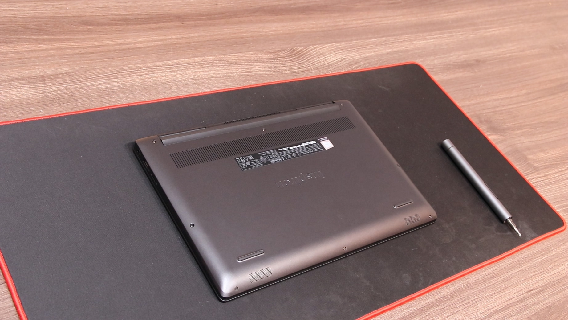 분해하기 전에 이 뒤를 보면 공기를 흡입하는 흡입구가 일반적인 고사양 노트북이 아닌 저전력 노트북 정도로만 뚫려 있습니다. 이 부분과 노트북의 두께를 생각해 봤을 때 팬의 용량이 작다는 것을 예상할 수 있고, 작은 팬 용량은 높은 발열로 연결됩니다. 그리고 높을 발열로 인해 동일한 CPU를 사용하는 동급 노트북 대비 성능이 잘 나오지 않는다는 것 까지 유추할 수 있죠. 100% 맞지는 않겠지만 이런 공학적 접근은 사실 뭐 대단한 것은 아니기 때문에 예측하는 대로 거의 맞습니다.
