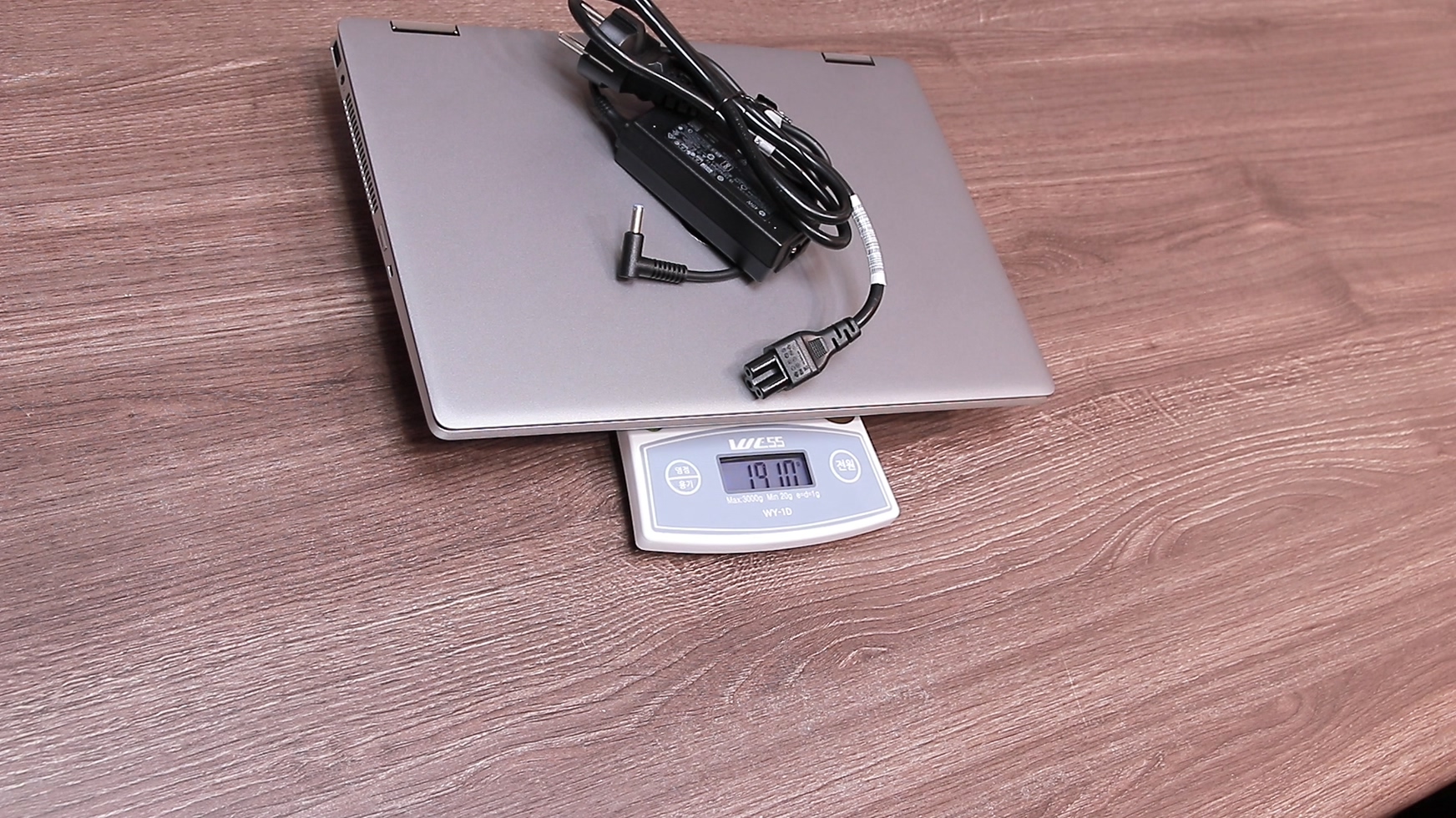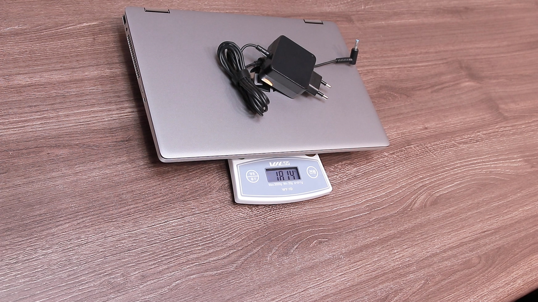 1.6kg정도로 14인치 치고 무거운 무게라고 생각할 수 있겠지만 전면에 강화유리가 들어간 2in1 노트북이라고 했을 때 나쁘지 않은 무게라고 생각합니다. 정품 충전기를 같이 재면 1.9kg이고 일체형 충전기를 같이 재면 1.8kg입니다.