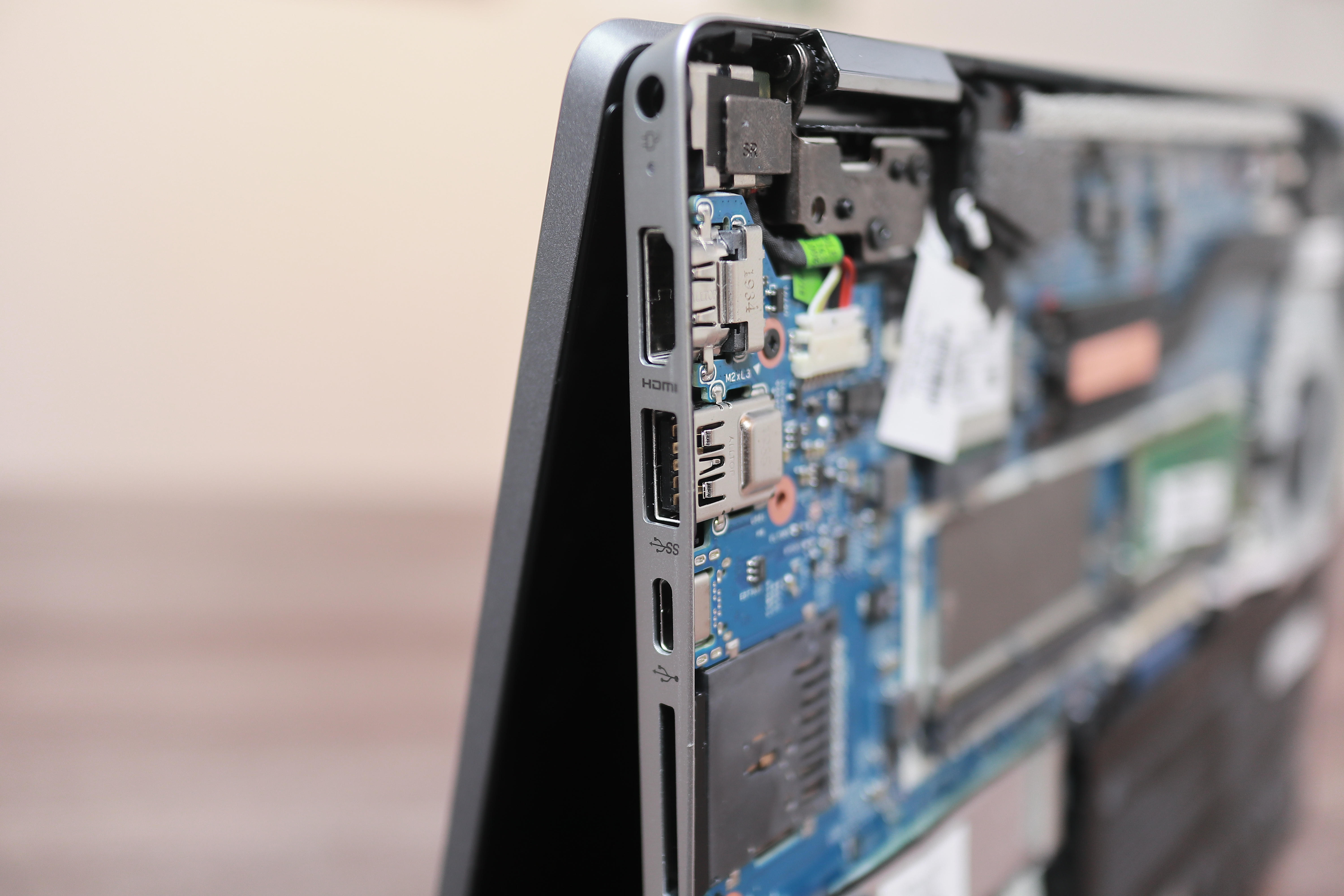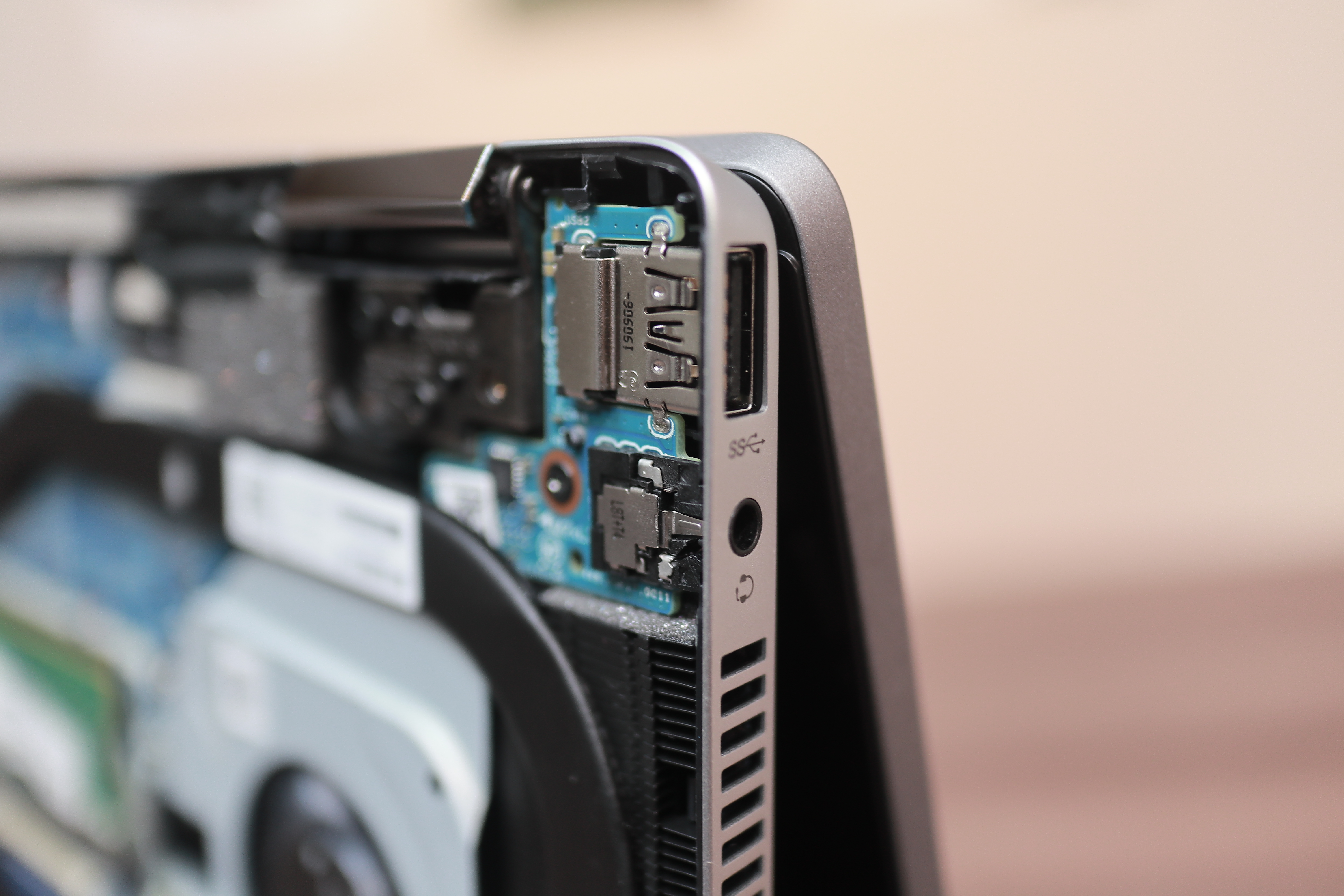 전원부 포트만 살짝 보강 되어있고 나머지 포트들은 전체적으로 내구성이 좋지 않아 보입니다. 여기 보이는 C단자는 당연히 충전이 되지 않고 아무런 의미가 없는 데이터만 담당하는 C단자로 파빌리온이라는 보급형 라인의 한계를 보여준다고 생각합니다.