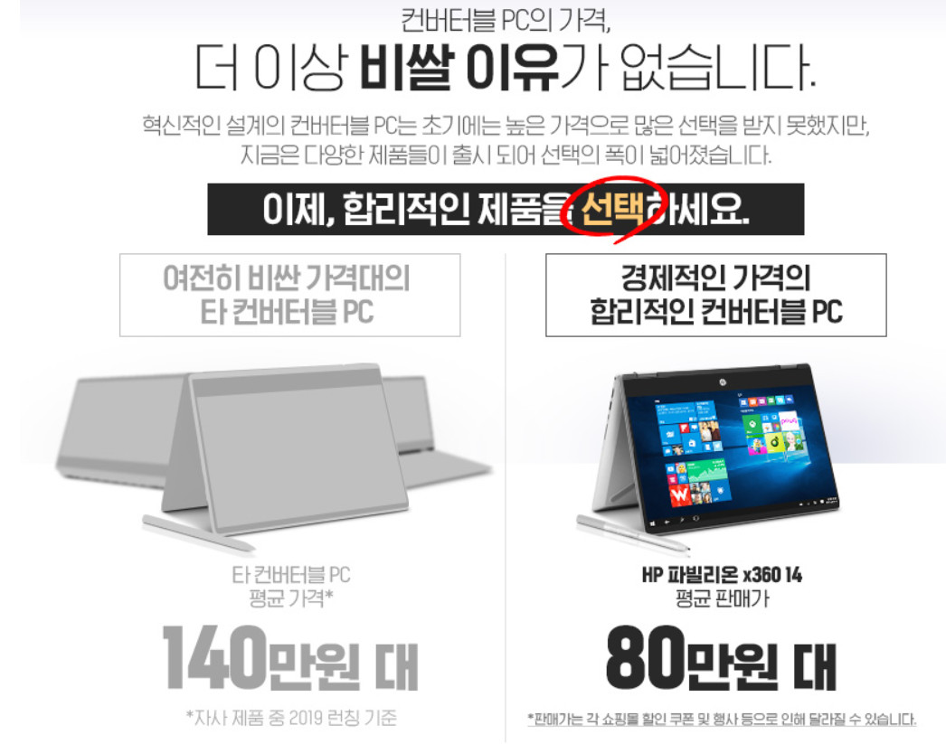 그리고 오늘의 주인공인 파빌리온 X360은 좀 뚱뚱하고 디자인에 고급스러움은 없지만 2in1 노트북에서 굉장히 중요한 사용성 하나 만큼은 비싼 노트북들 보다 더 좋다고 평가 내릴 수 있습니다.