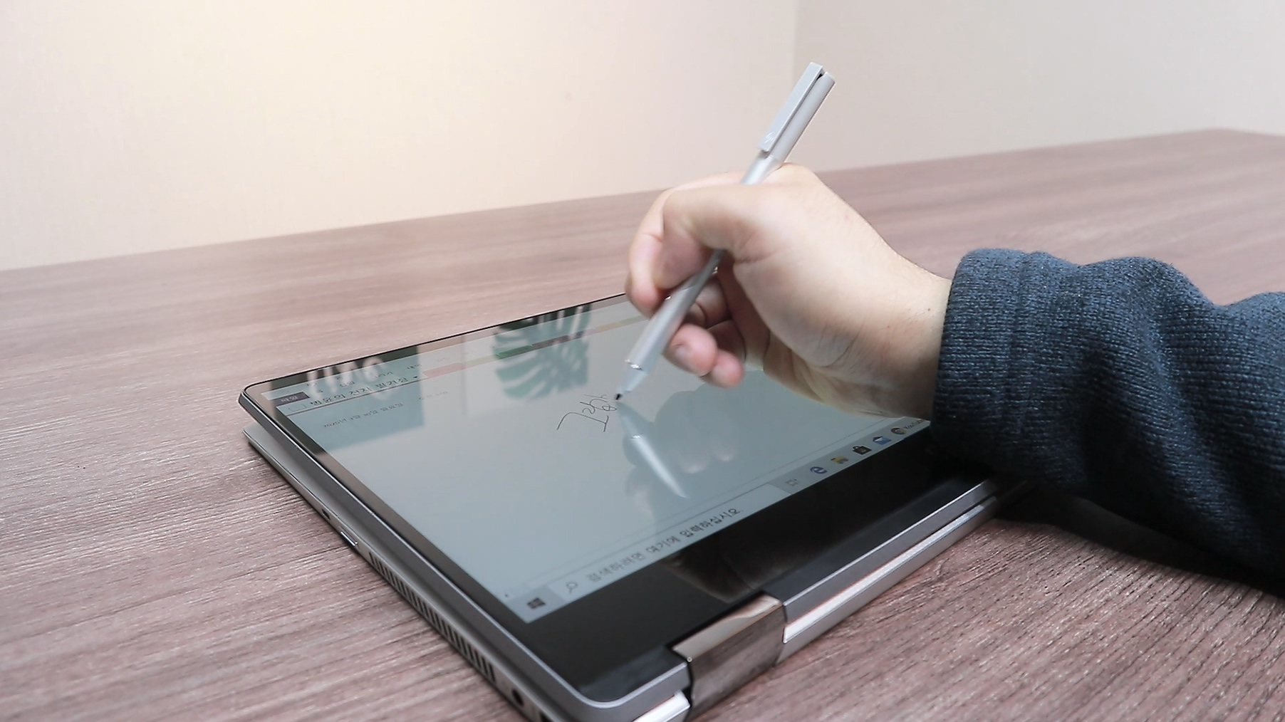 HP 액티브펜의 감도는 좋습니다. 하지만 다른 2in1 노트북 대비 필기감은 좋지 못합니다. 2in1 노트북들은 디스플레이가 강화유리로 되어있죠.