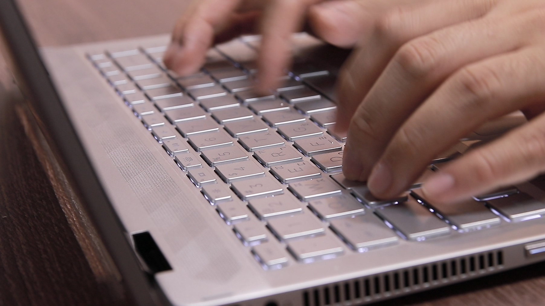 맨 오른쪽 한 줄이 추가되었지만 마지막 열은 추가 된 키가 없습니다. 그 말은 마지막열에 한 칸의 공간을 비워 둬야 밸런스가 맞다는 의미인데 외관적인 이유로 그러한지는 모르겠지만 Alt키와 한영키의 가로 길이를 늘려서 밸런스를 맞췄습니다. 그 결과 보통의 노트북들은 한영키가 "콤마" 아래에 있는 반면, 이 노트북은 "마침표"아래 한영키가 위치하게 되죠. 이 구조는 HP의 14인치 모든 노트북에서 발생되는 문제로 초반에 한영키에서 오타가 많이 발생합니다. 한영키를 누르려고 하면 스페이스의 끝 부분이 눌려지게 되죠. 여기서 익숙해 지고 아니고는 사람마다 다르기 때문에 큰 단점으로 볼 순 없겠지만 일반적인 표준 노트북 레이아웃에 익숙한 사용자라면 반드시 불편함을 느끼실 수 있습니다.