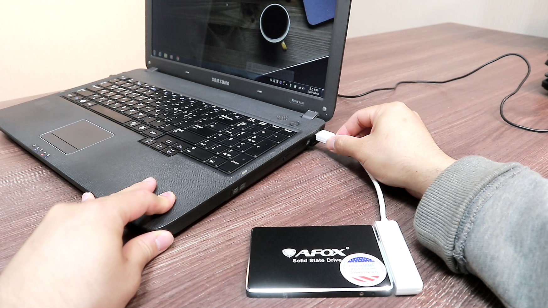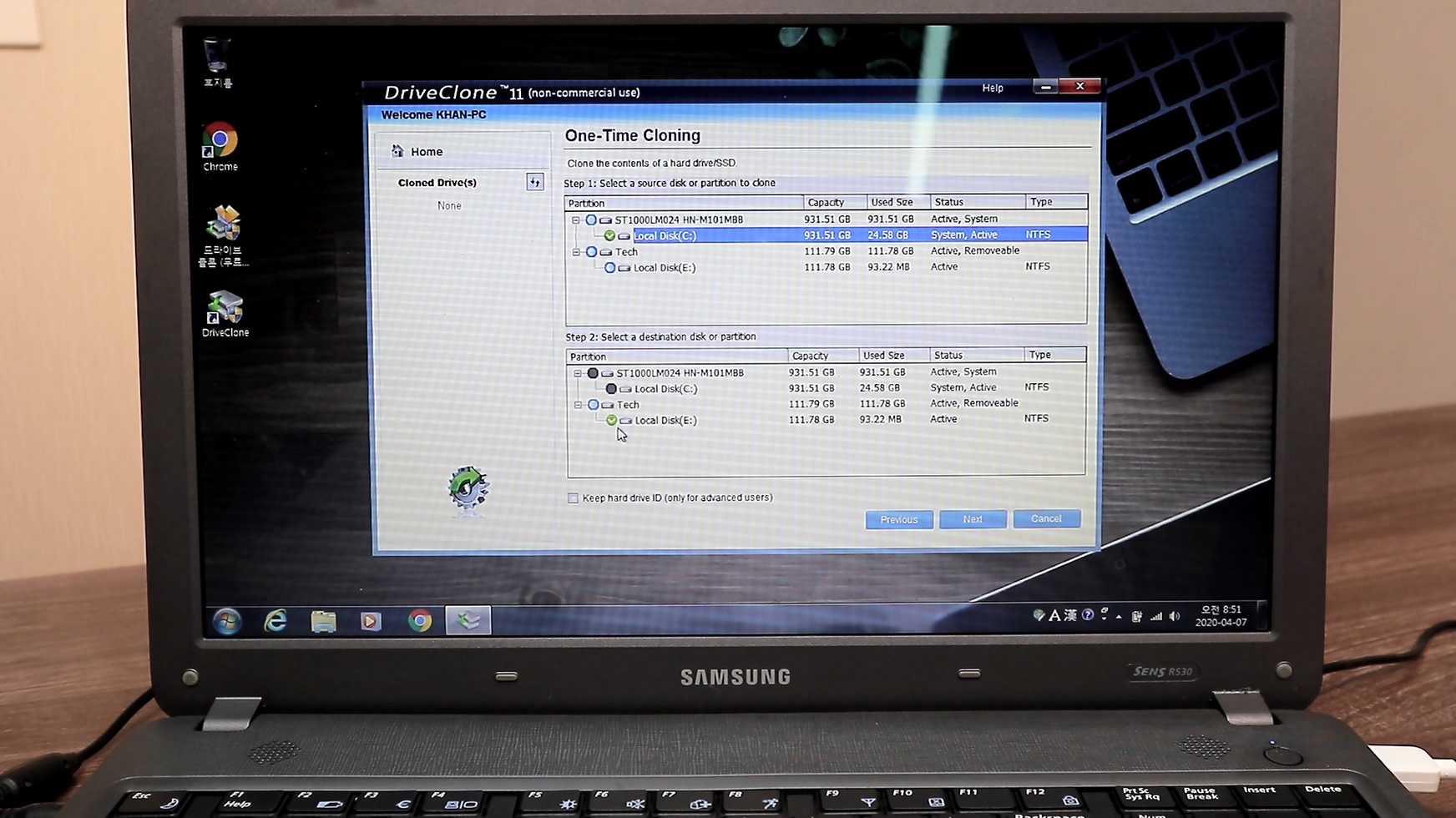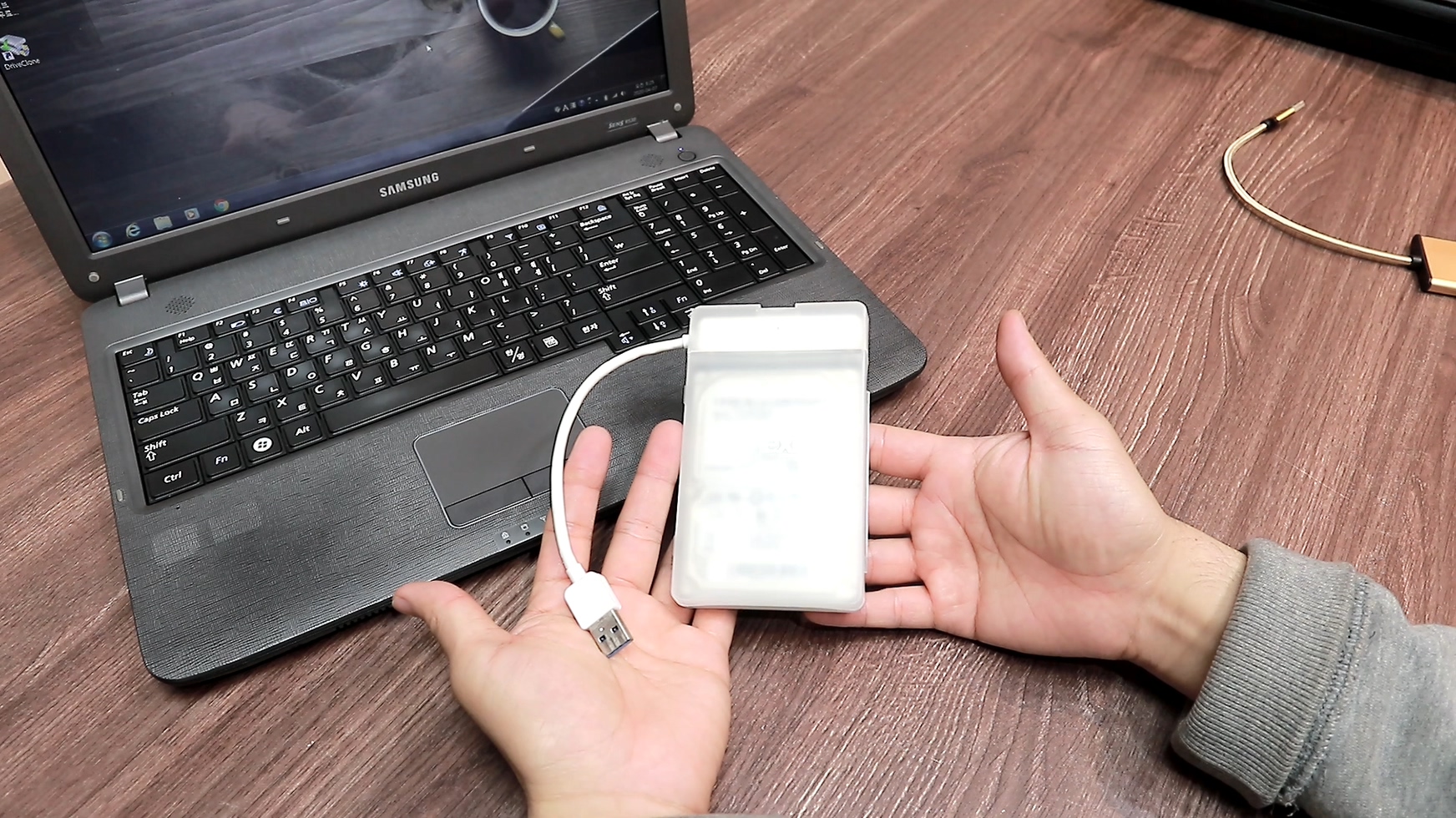 구형 노트북 윈도우 진입하고 USB케이블을 이용해서 SSD를 노트북에 연결합니다. 그리고 제가 추천한 마이그레이션 프로그램을 설치하고, 실행해서 제가 하는 그대로 따라 하시면 됩니다.