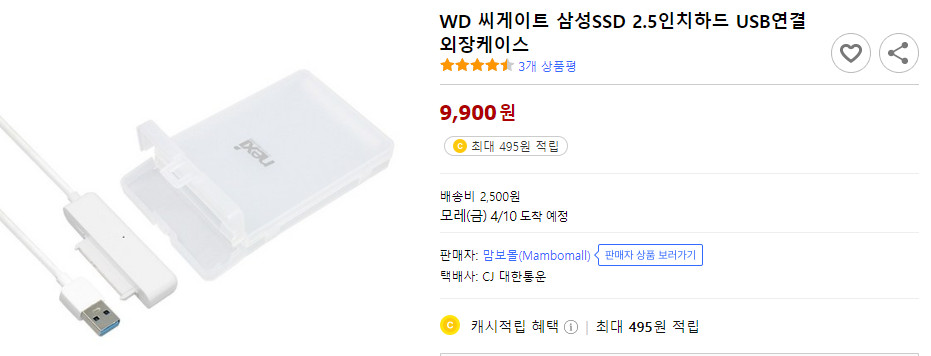 마이그레이션을 하려면 이 SSD를 노트북에 연결해야 합니다. 그러기 위해 연결 케이블이 필요하겠죠. 만약 이 케이블만 구매한다면 마이그레이션 이후 이 케이블은 쓸 일이 거의 없어요. 살면서 마이그레이션을 몇 번이나 하겠어요. 그래서 이 케이스까지 같이 있는 상품을 구매하시는 것이 좋습니다. 그러면 노트북에서 제거한 HDD는 이 케이블과 케이스의 조합으로 외장하드가 될 수 있는 거죠. 제가 사용하는 이 제품은 만원 정도로 링크 걸어두겠습니다.