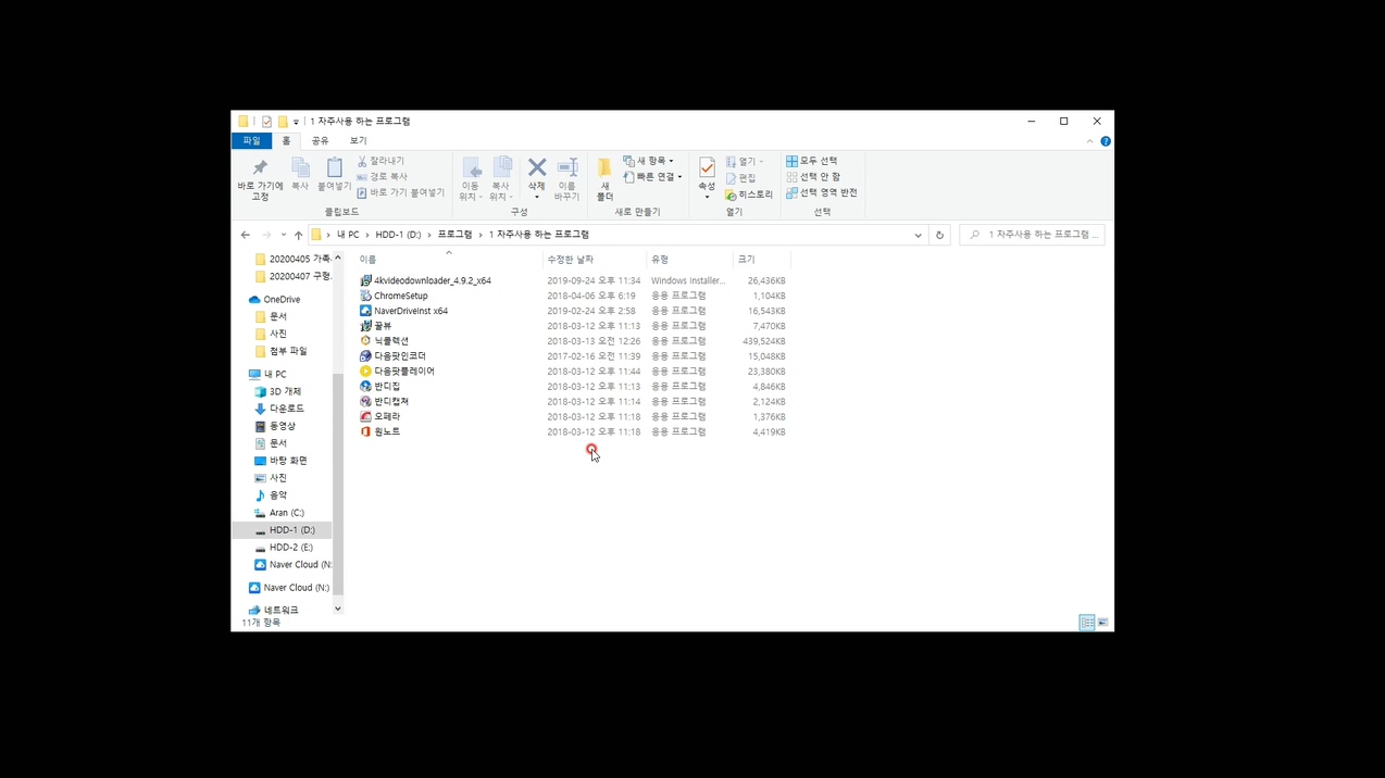 초보자분들은 쓰지 않는 프로그램 지우는 것을 너무 못하세요. 왜 못하는지 저는 알고있어요. 언젠가는 사용 할 프로그램이라고 생각하기 때문이죠. 지금까지 사용하지 않은 프로그램은 앞으로도 사용하지 않을 가능성이 높습니다. 필요 하면 그때 설치하셔도 충분합니다. 설치하지 않고, 설치 파일만 가지고 있는 것도 좋은 노트북 관리 방법이죠. 저는 이렇게 자주 쓰는 프로그램들과 가끔 쓰는 프로그램 설치 파일들을 따로 가지고 있습니다.