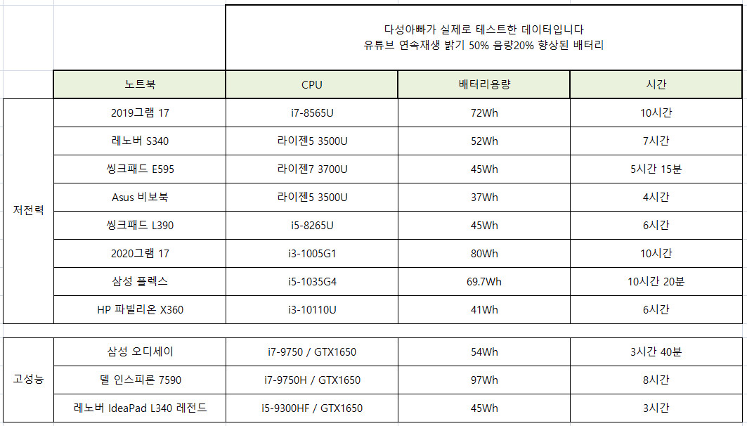 인터넷 서핑 하고 유튜브 보는 일반적인 작업 역시 3시간 넘기기 힘듭니다.