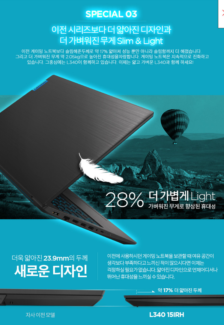 GTX1650이 탑재 된 고성능 노트북 중에서 가장 저렴한 레노버 아이디어패드 L340 레전드의 네 번째 리뷰이자 마지막 리뷰입니다. 인텔 10세대 고성능 노트북의 신상품이 나오고 있기 때문에 신중한 선택이 필요한 시기라고 생각할 수 있겠지만, 라이젠 신형이라면 모를까 인텔 신형이 이 제품 보다 가성비 좋게 나오기 힘듭니다. 성능에 대한 욕심을 조금만 내려 놓고 가성비로 접근한다면 충분히 매력적인 노트북입니다.