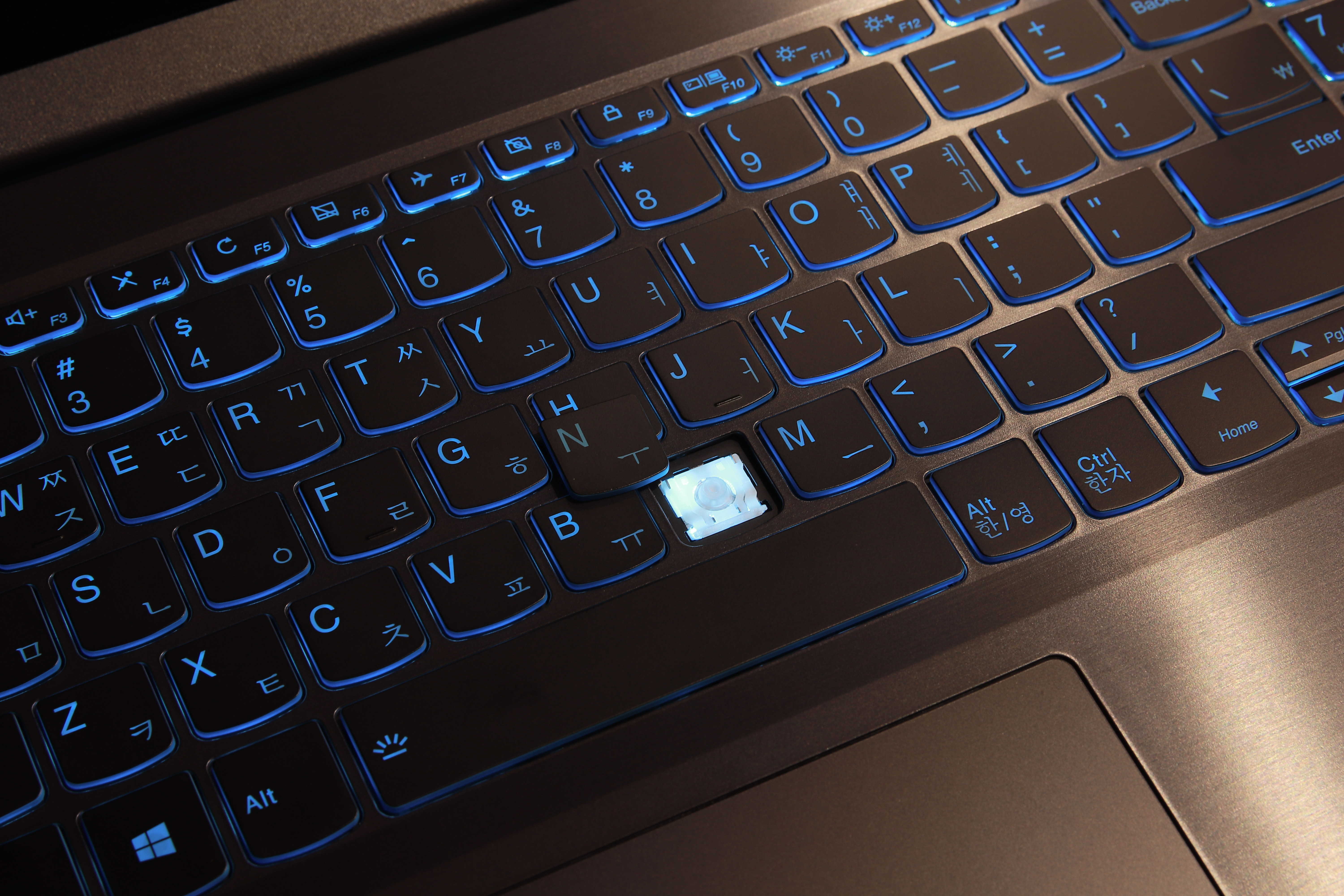 아이디어패드에 들어가는 키보드와 동일한 키보드가 들어갔고, 레이아웃도 당연히 동일합니다. 일반적으로 아이디어패드 키보드의 키감은 좋다고 평가 받습니다. 제가 사용해 봐도 키감 자체는 훌륭합니다. 개인적으로 이 구분감 없는 방향키 정말 너무 싫어하지만 이 방향키 빼고는 전체적으로 무난합니다. 숫자패드도 4열로 사용성이 좋고, 노트북용 풀사이즈 키보드를 좋아하는 유저라면 누구나 좋아할 수 있는 키보드입니다.