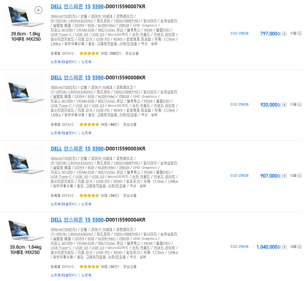 노트북용 C타입 PD충전기 구매가이드 (29) 2020.04.24 가성비 좋은 원격수업용 노트북 구매TIP / 코로나로 인한 온라인 개학 / EBS 온라인 클래스 / 인강용 노트북 (1) 2020.04.23 [끝장리뷰] 델 인스피론 15 5590 / 장점, 단점 위주의 실사용 후기 (3) 2020.04.22 델 인스피론 15 5590 / 언박싱, 분해&분석, 셀프 업그레이드 / 초기 세팅 (5) 2020.04.20 [끝장리뷰] 레노버 아이디어패드 L340-15IRH i5 LEGEND / 장점, 단점 위주의 실사용 후기 (1) 2020.04.18 레노버 아이디어패드 L340 LEGEND / 성능, 발열, 소음 리뷰 / i5-9300HF, GTX1650 (0) 2020.04.17 옵티머스 VS 논옵티머스 / i7-9750HF와 i5-9300HF의 가장 쉬운 설명 (feat. 레노버 아이디어패드 L340-15IRH i5 LEGEND) (1) 2020.04.14