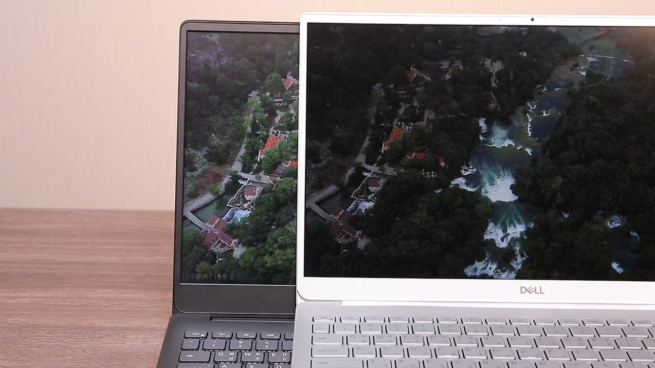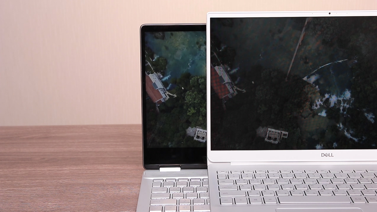 그리고 집에 와서 차분하게 디스플레이를 다시 확인했습니다. 최근에 구매해서 사용하고 있는 델 인스피론 7590과의 비교입니다. 사실 두 노트북은 체급차가 큰 노트북이지만 7590이 그렇게 좋은 디스플레이가 들어간 건 아니죠. 딱 봐도 차이가 심하죠? 시야각도 차이가 굉장히 심합니다.