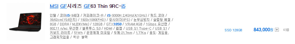여기서 더 저렴하게 게이밍 노트북의 느낌만 받고 싶다면 CPU만 i5로 바꾸면 되요.