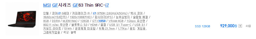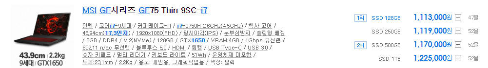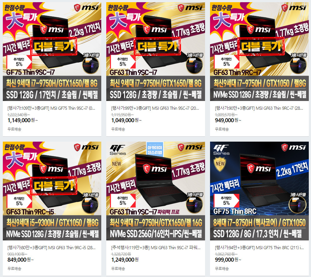 #MSI GF시리즈 #GF63 #GF75 #Thin #가성비 #게이밍 #영상편집 #노트북 #i7-9750H #i5-9300H #GTX1050 #GTX1650 #15.6인치 #17.3인치