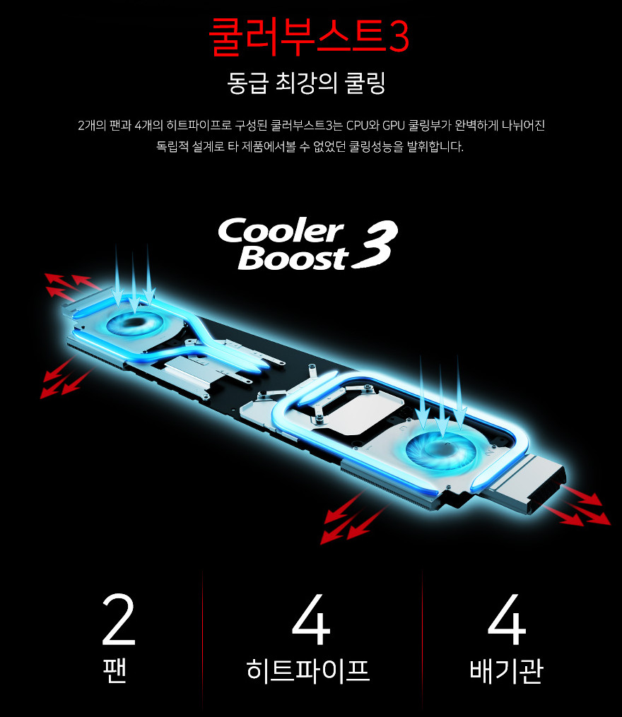 이방식은 CPU만 단독사용되는 작업에는 쿨링성능의 50% 밖에 활용되지 못하는 단점이 있고 CPU단독 사용시 발열이 상당히 올라갑니다. 당연한 말이지만 구조 자체가 완벽히 게이밍 노트북으로 만들어졌네요. 실제로 제가 본 실험에서는 CPU 스트레스 테스트 시 온도가 95도로 상당히 높게 유지되었습니다. 그래픽 카드를 사용하지 않는 작업을 하는 사용자 한테는 좋지 못한 쿨링 방식입니다. 쉽게말해 게임하는 유저들 한테는 좋은 노트북이지만, CPU를 더 많이 사용하는유저들한테는 좀 불리할 수 있어요.