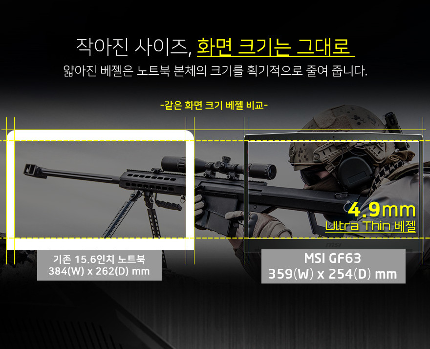 쉽게 말해 MSI GF시리즈가 아무리 경량화가 되었다 해도 고성능 CPU를 사용하는 노트북의 포지션에는 변함이 없다는 거죠.