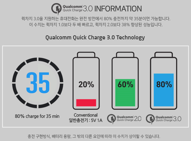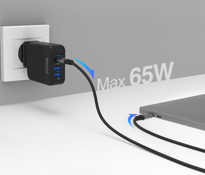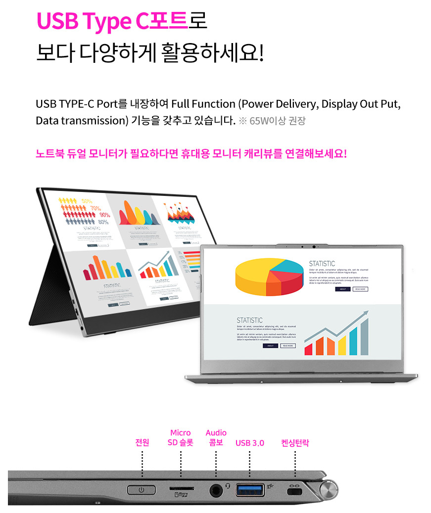 노트북 단독 충전시 65W 지원하고 퀄컴3.0 지원으로 스마트폰 충전도 빠르게 가능합니다.