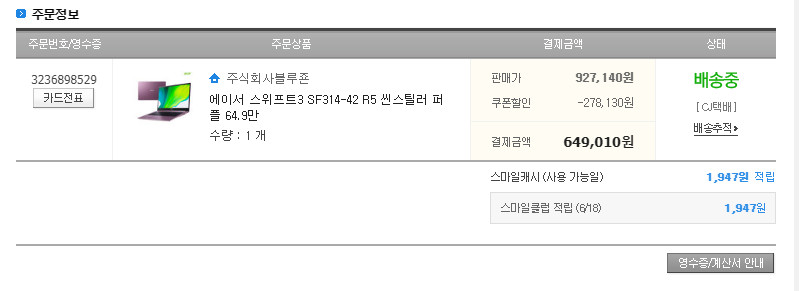 둘 중 하나를 선택하라면 저전력CPU를 탑재 한 노트북 답게 경량화를 선택하는 것이 맞다고 봅니다. 그렇기 때문에 저는 스위프트3가 확장성이 떨어지는 것에 대해 큰 불만은 없습니다. 경량화가 잘 되었기 때문이죠. 이 부분은 분명히 호불호가 있겠지만 제 의견은 이렇습니다.