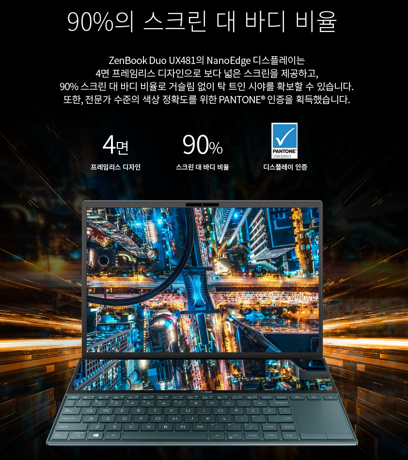 듀얼스크린으로 인해 키보드가 하단 배치되었는데 좁은 공간에 키보드와 터치패드까지 다 넣다 보니 레이아웃이 엉망이 되었습니다. 이 부분은 직접 충분히 사용해 보고 추가 리뷰하도록 하겠습니다.