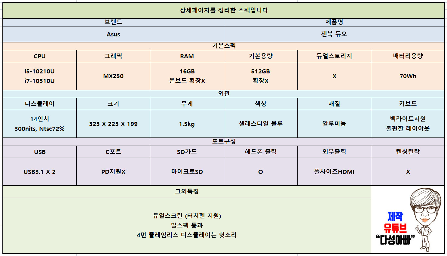 Asus 젠북 듀오 상세페이지 분석 / 영상편집에 특화 된 듀얼모니터 노트북 / 옥션, 지마켓, G9 빅스마일데이 노트북 추천IT분석과 리뷰 2020. 5. 20. 22:59반응형