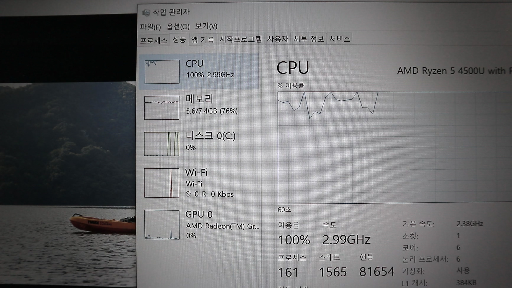이 말은, 라이젠 4500U라는 CPU가 가진 성능이 충분히 나오지 않는다는 것을 의미하죠.