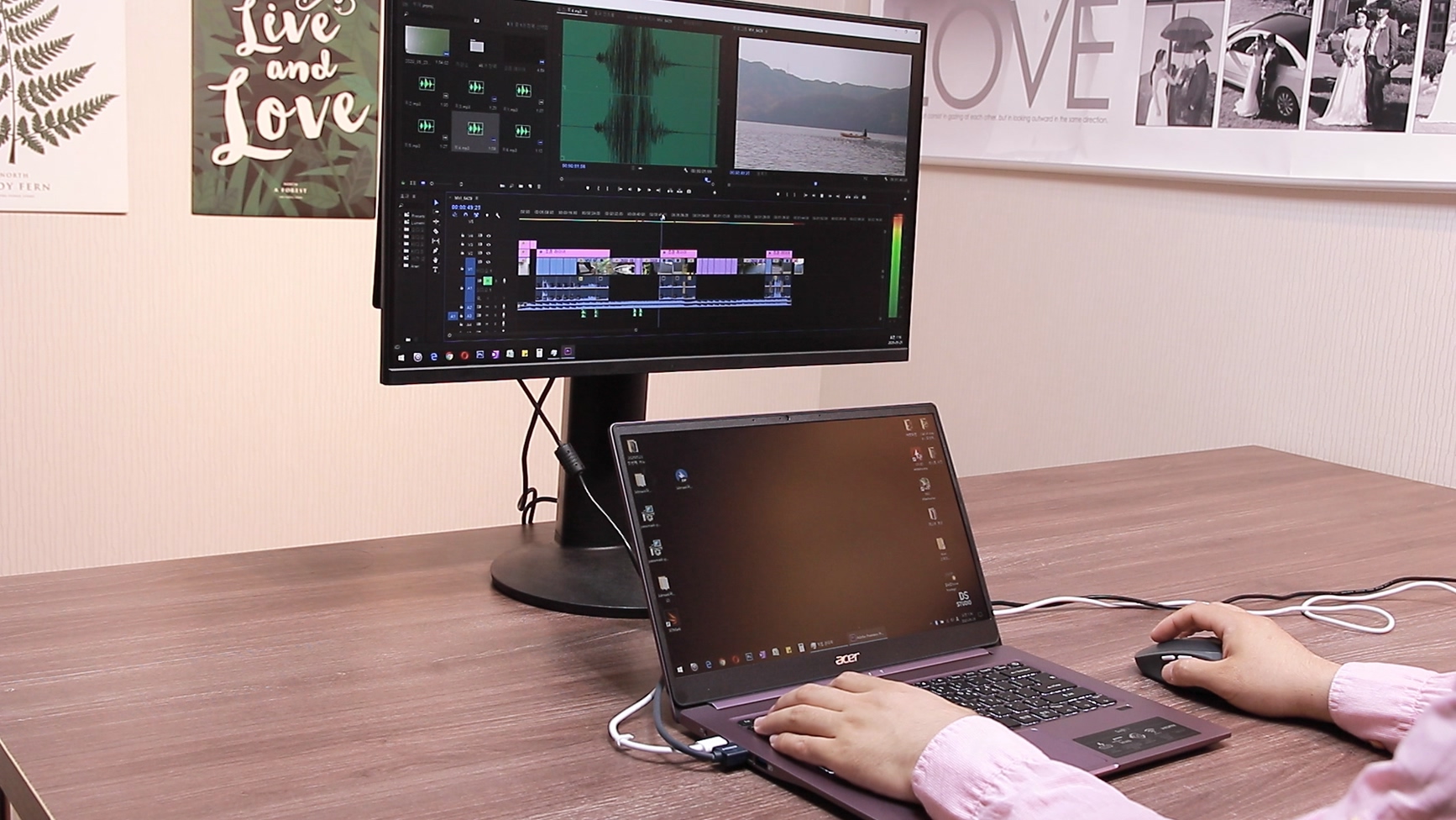 풀HD모니터 하나만 연결해서 사용하면 포토샵 영상작업과 같은 그래픽 작업에서도 아주 부드럽게 잘 되고, 사양만 맞다면 게임 역시도 충분히 플레이 가능합니다. 영상편집은 노트북로만 작업 할 때 와 크게 다르지 않게 느낄 정도의 부드러운 작업이 가능했고, 여러 영상에서 말씀드렸지만 저는 이렇게 집에서는 모니터 연결해서 사용하는 것을 추천드립니다.