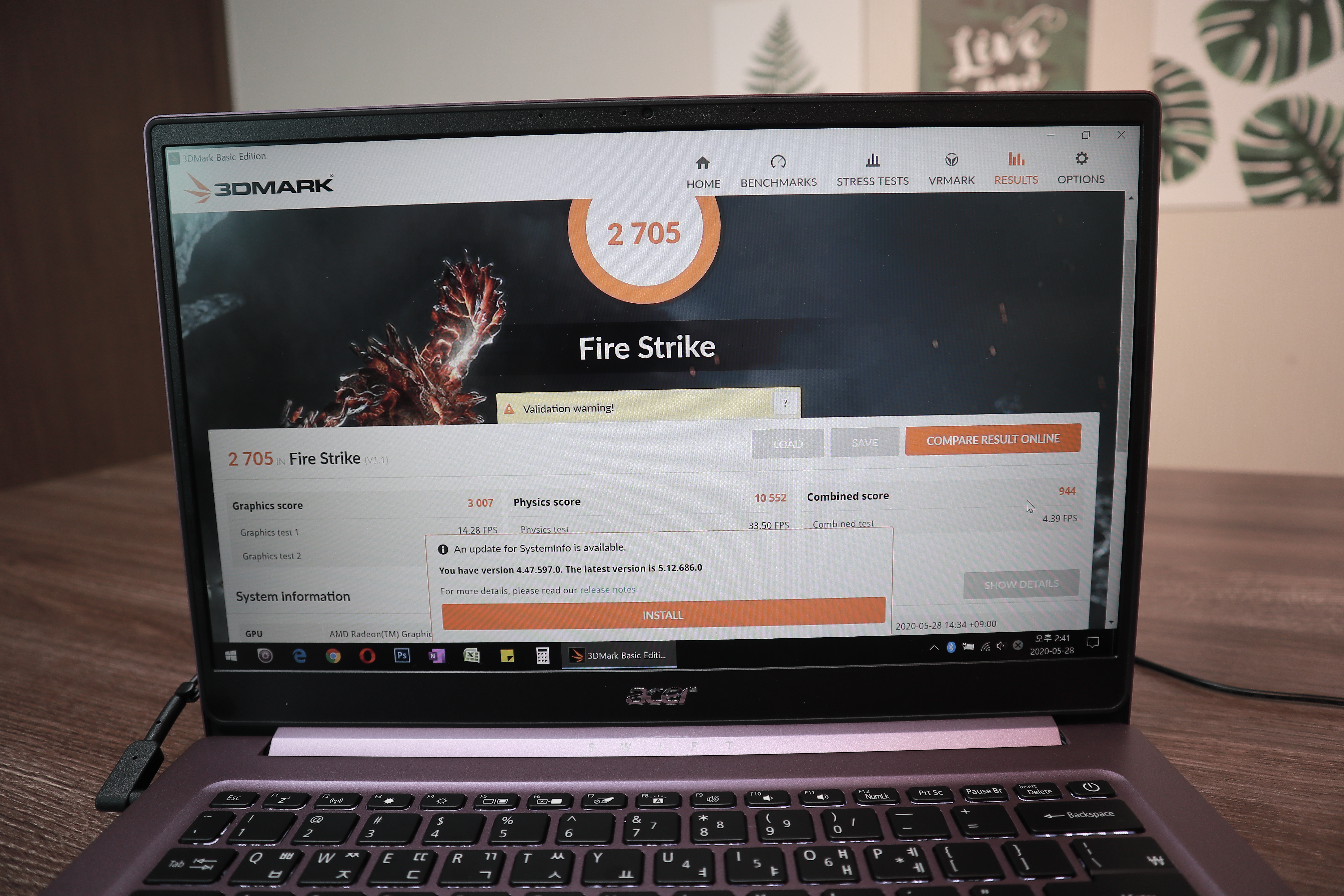 게임이나 영상편집과 같은 고성능 그래픽 작업을 하는 분들 중 전작인 라이젠 3500U 대비 체감 될 수 있는 성능 향상을 원한다면 스위프트3를 구매하지 않는 것이 좋습니다.