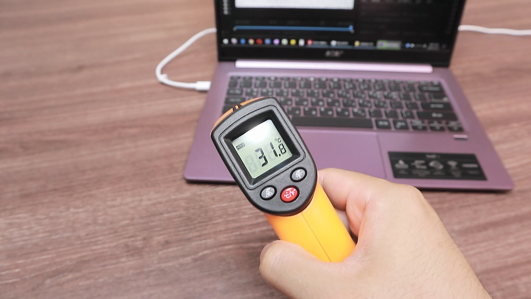 발열도 안정적입니다. 보통 메탈재질이 열 전도율이 높기 때문에 노트북의 발열이 시작 되면 키보드쪽으로 빠르게 열이 전도 됩니다. 하지만 발열 처리가 안정적으로 되기 때문에 CPU쪽만 37도 정도로 올라가고 전체적으로 30도 초반을 유지하고 있습니다. 물론 CPU 자체의 온도는 90도를 넘고 있겠지만 좋은 발열 처리로 노트북의 전체 온도는 안정적으로 유지가 됩니다. 이정도 사용하면 노트북 하판 역시 뜨거워야 정상이지만 그냥 따뜻한 정도로만 유지 됩니다.