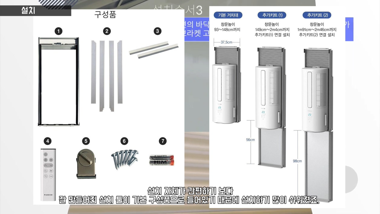 요즘 나오는 창문형 에어컨들은 정말 설치가 간편합니다. 설치 자체가 간편하기 보다 잘 만들어진 설치 툴이 기본 구성품으로 들어있기 때문에 설치하기 많이 쉬워졌죠. 하지만 에어컨 사이즈가 작지 않기 때문에 일반적인 형태의 창문에만 설치가 가능합니다. 이름이 "창문형 에어컨"인 이유도 설치 공간 때문이죠. 그리고 에어컨 무게가 있기 때문에 여성분들은 혼자 설치가 힘들 수 있습니다.