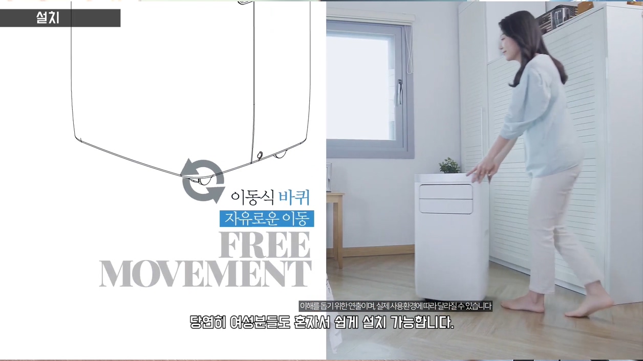 창문형 에어컨이 아무리 설치가 간편하다고 해도 이동식 에어컨만 못하죠. 다양한 창문에 설치가 가능한 것은 물론, 창문이 아니더라도 작은 구멍만 있으면 어디든지 설치 가능합니다. 당연히 여성분들도 혼자서 쉽게 설치 가능합니다.