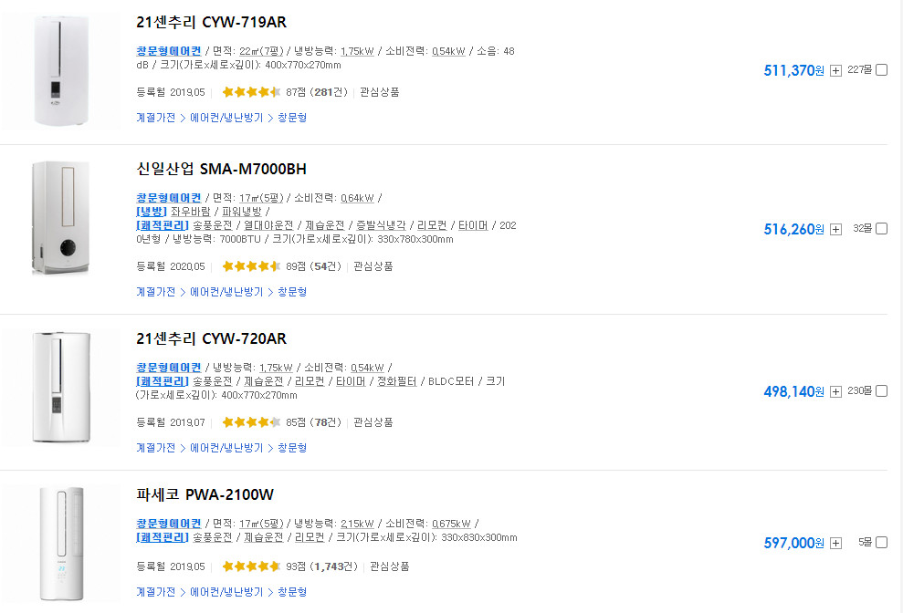 이렇게 접근하면 창문형 에어컨 보다 상대적으로 이동식 에어컨의 가성비가 더 좋다고 말할 수 있습니다.
