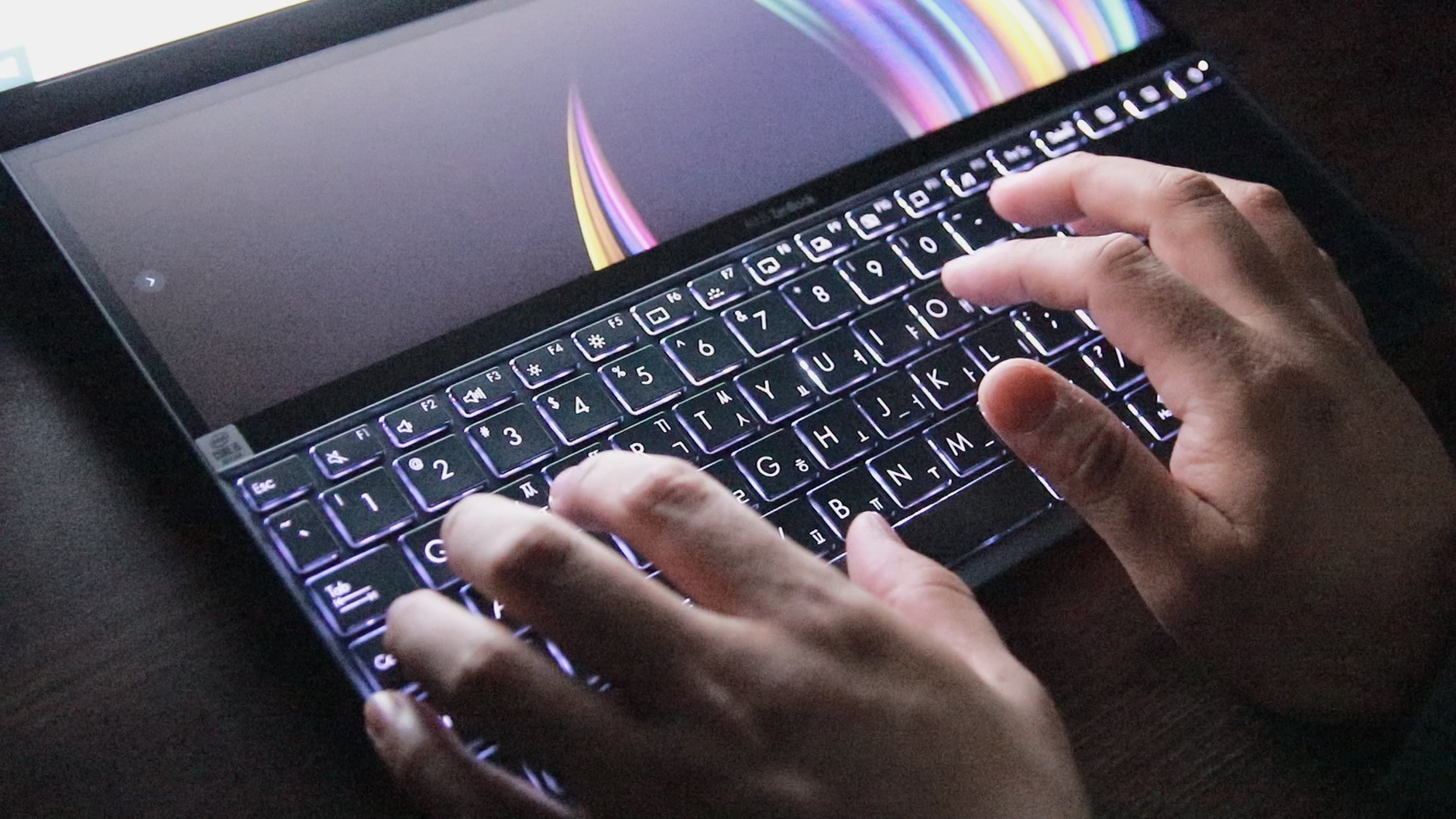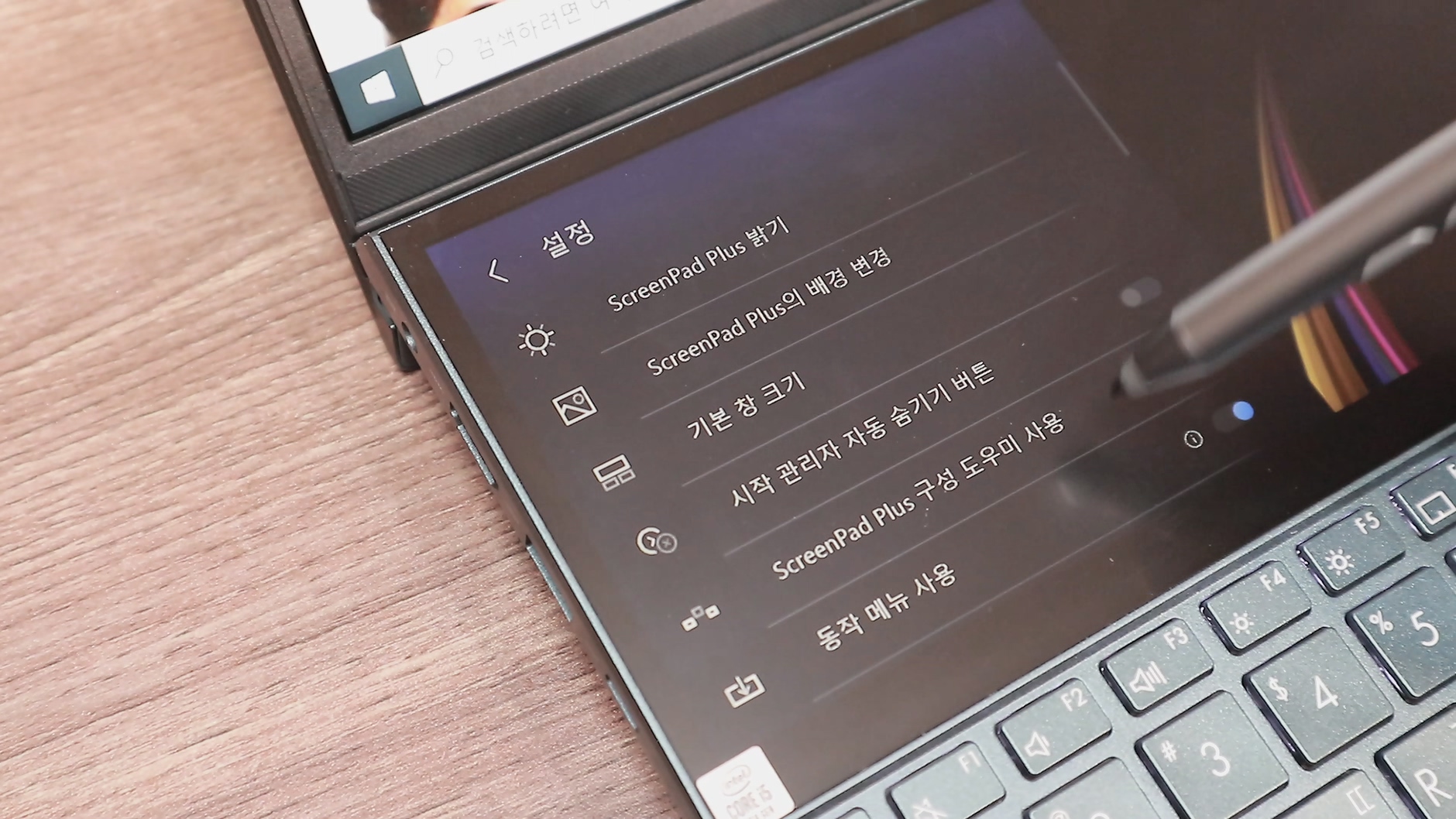 스크린패드 플러스를 한 마디로 평가하자면 "직관적인 사용성"입니다. 키보드 바로 위에 있기 때문이죠. 타이핑 포지션에서 살짝 손만 올리면 바로 터치가 가능하기 때문에 이 부분이 실제 사용 환경에서 너~무 편리했습니다. 지문이 잘 묻지 않는 패널이기 때문에 더욱 직관적인 사용이 가능했고 내장 된 소프트웨어로 직관적인 사용의 정점을 찍을 수 있었죠. 그리고 키보드에 있는 메인 디스플레이와, 보조 디스플레이의 위치를 바꾸는 키와, 보조 디스플레이 화면을 끄는 키 역시 직관적인 사용성을 도와 줍니다.
