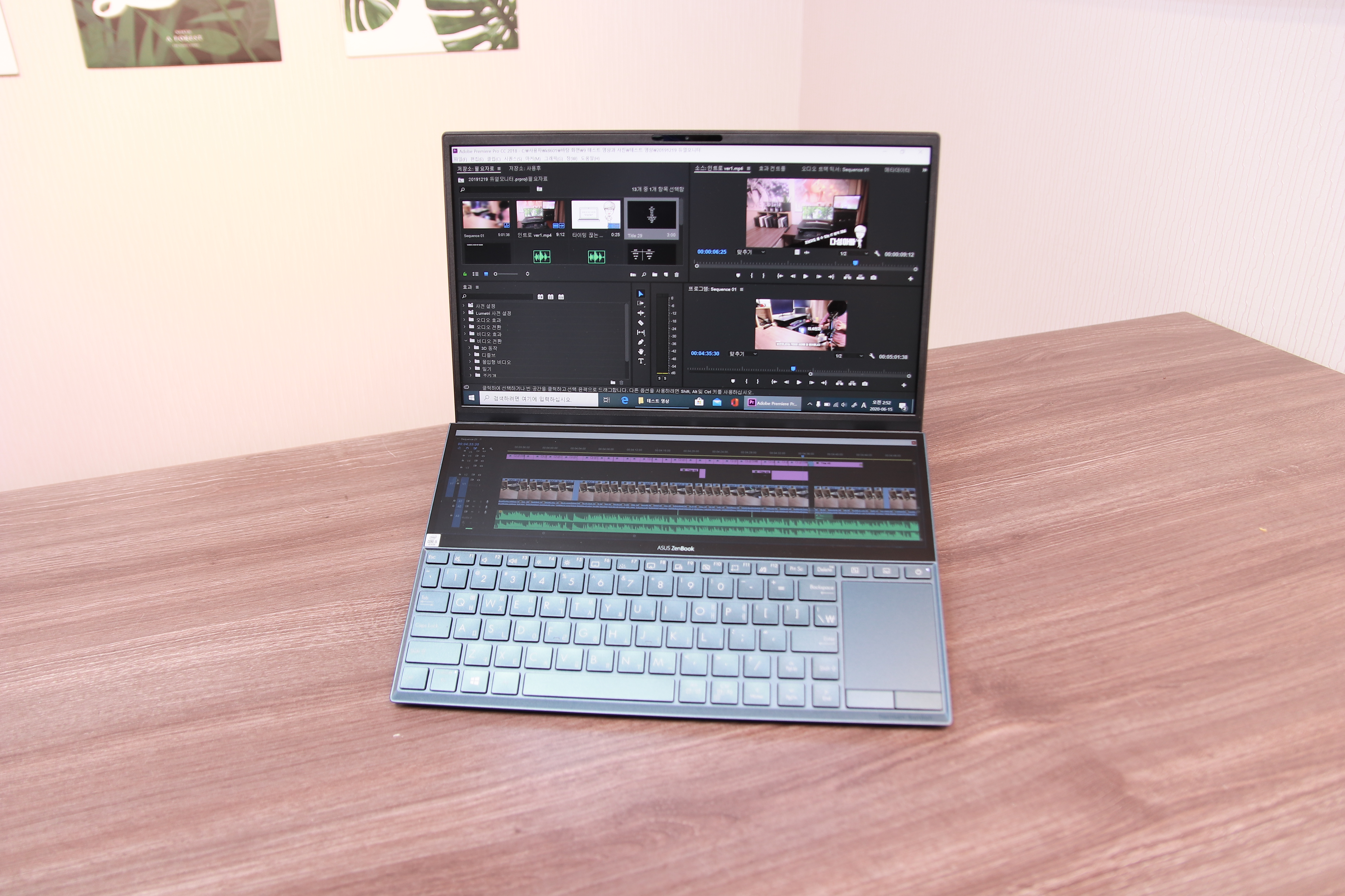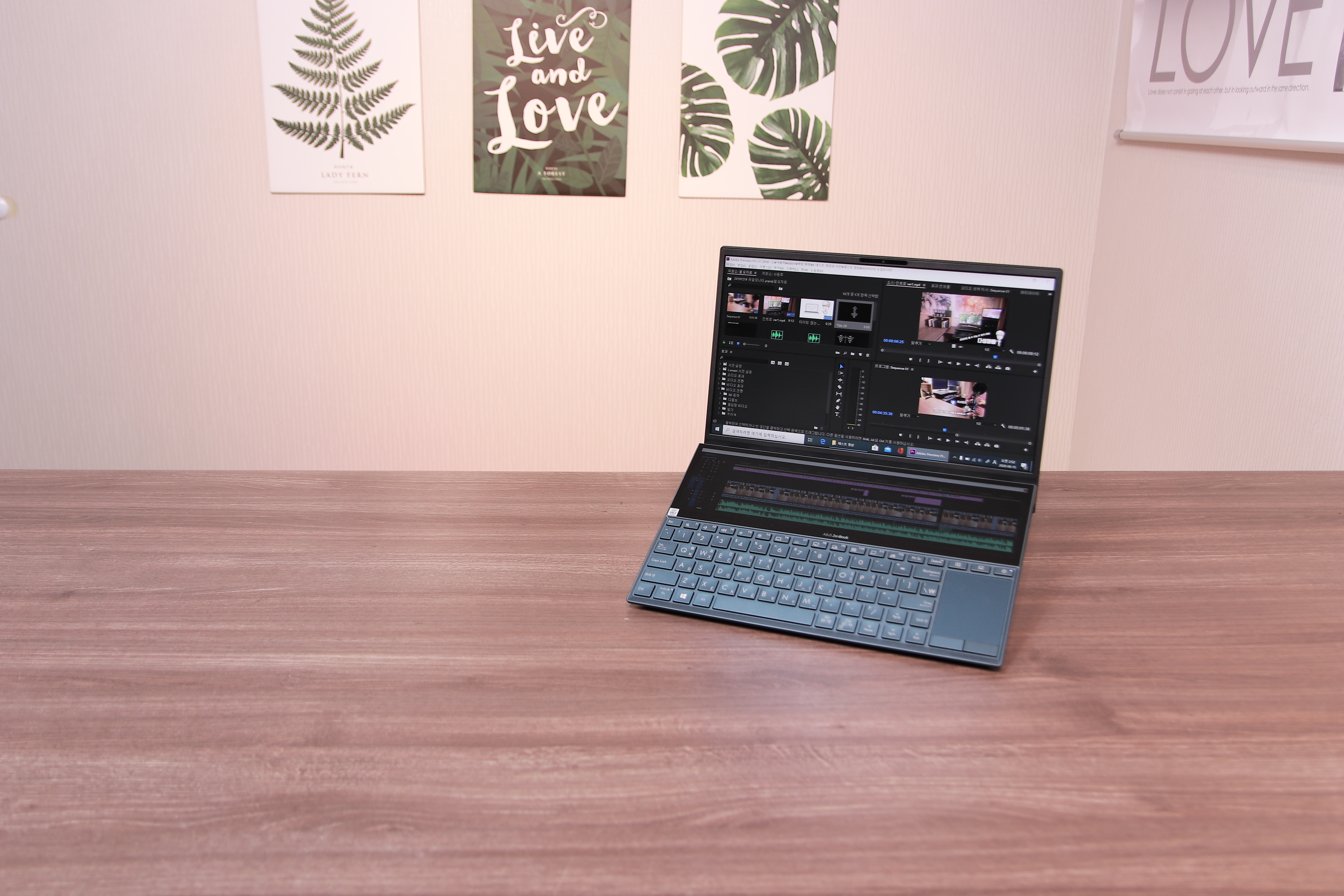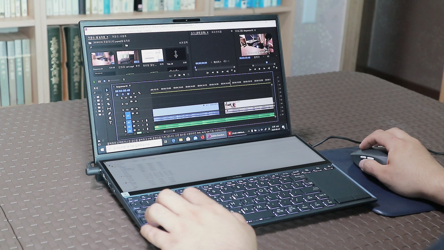 젠북 듀오 광고는 정말 사고 싶게끔 잘 만들어졌어요. 특히 영상편집에 대한 광고 사진이 정말 매력적이죠. 프리미어프로의 타임라인을 보조 디스플레이에 넣고 컷편집을 하거나 펜과 터치를 이용해 직관적인 작업을 하는 모습은 영상편집 하는 사용자라면 매력적이게 보일 수 밖에 없습니다.