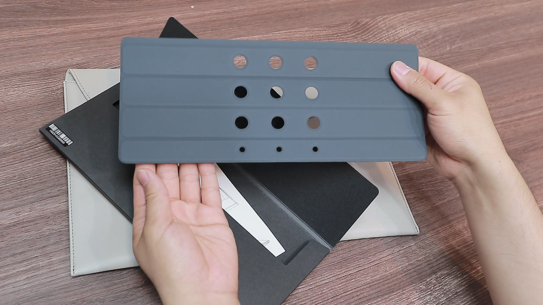 그리고 이 받침대는 노트북 아래에 부착해서 각도를 올려주는 악세서리입니다. 젠북 듀오는 에르고리프트 힌지가 다른 노트북 대비 굉장히 높게 적용 되어있기 대문에 이런 악세서리가 굳이 필요 없는 노트북인데, 굳이 이런 것을 넣은 것은 당연히 이유가 있죠. 이 보조디스플레이는 지나치게 바닥을 향하고 있기 때문에 지속적으로 사용했을 때 사용성이 매우 떨어집니다. 한마디로 계속 보면 목이 아파요. 이 부분을 Asus가 잘 알고 있기 때문에 이런 액세서리를 굳이 넣은 거죠. 젠북 듀오 스스로가 듀얼 디스플레이의 단점을 잘 알고 있고, 더 이상 노트북 자체적으로 해결할 수 없다는 것 역시 잘 알고 있기 때문에 악세서리로 조금은 만회하려고 노력하는 거죠.