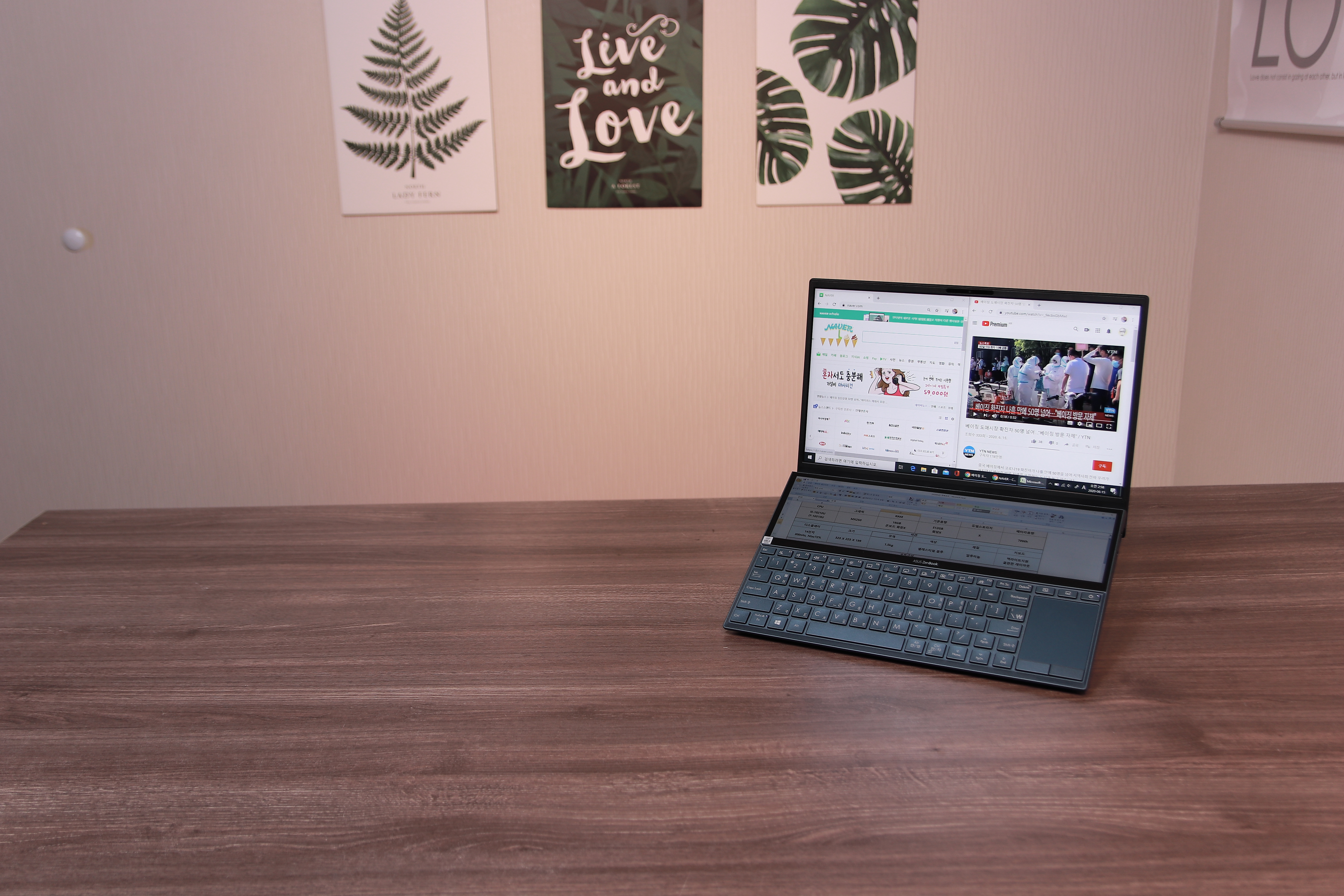 지난 한 달간 젠북 듀오를 정말 잘 사용했습니다. 듀얼 디스플레이가 좀 어둡고 각도가 좋지 않지만 제가 설명 드린 "보조 디스플레이"로 사용한다면 정말 완벽한 생산성 노트북이 되는 거죠. 하지만 저는 이 노트북이 지향하는 그래픽 작업을 하지는 않았습니다. 사무용으로만 사용했어요. 문서작업 할 때, 참고 자료를 듀얼 디스플레이에 띄우고 하면 너무 편해요. 그리고 유튜브 같은 영상 띄우고 서핑하기도 아주 좋고요. 이렇게 굳이 고성능 작업이 아니더라도 본인의 환경에 맞게 사용하면 아주 좋은 노트북이 될 수 있습니다. 하지만 이렇게만 사용 한다면 MX250과 듀얼 팬, 듀얼 히트파이트프가 낭비 되는 거죠. 저의 사용 범위에서는 굳이 무게 늘어나고 비용 증가하는 이런 것들이 필요 없거든요. 듀얼 디스플레이는 너무 좋지만 노트북 자체가 오버스펙이라는 거죠.