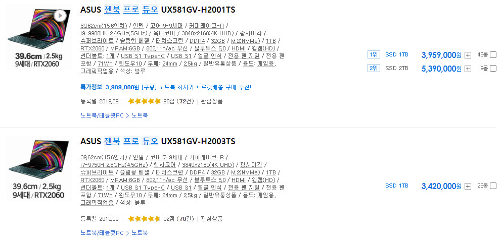 젠북 듀오의 가격으로 동일한 사양에 더 얇고 휴대성 좋은 노트북을 구매할 수 있음은 물론, 고성능 노트북도 구매할 수 있습니다. "그럼에도 불구하고 듀얼 디스플레이가 나에게 그렇게 중요한가" 이 고민이 쉽지 않을 것으로 생각 됩니다.