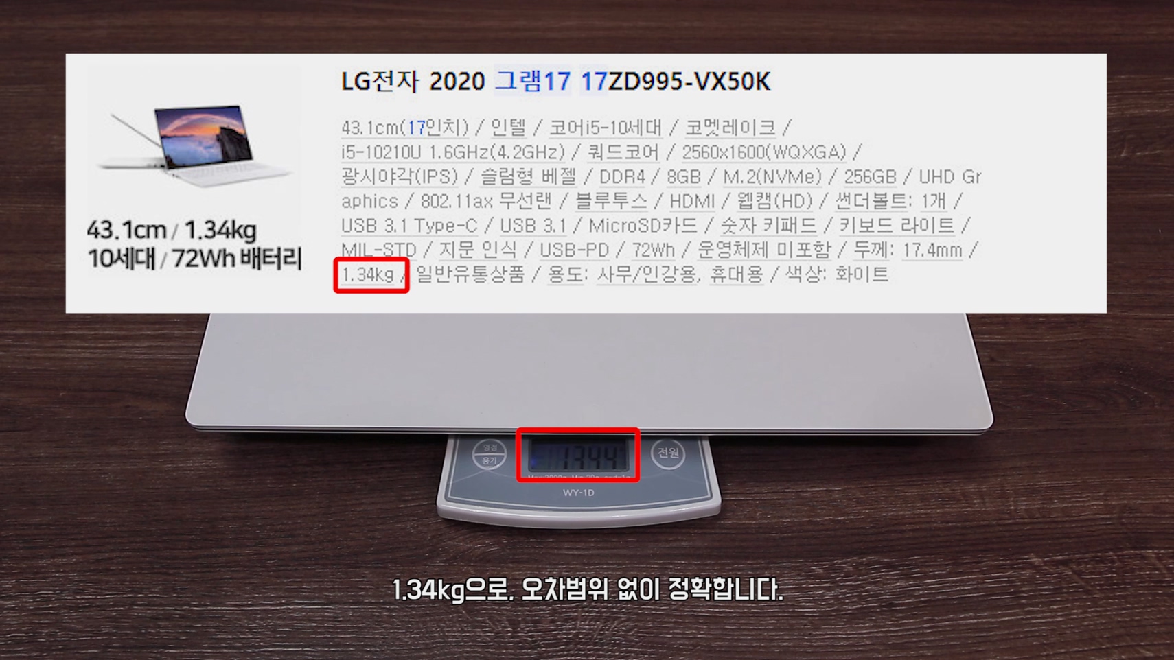 먼저 그램17은 1.34kg로, 오차범위 없이 정확합니다.