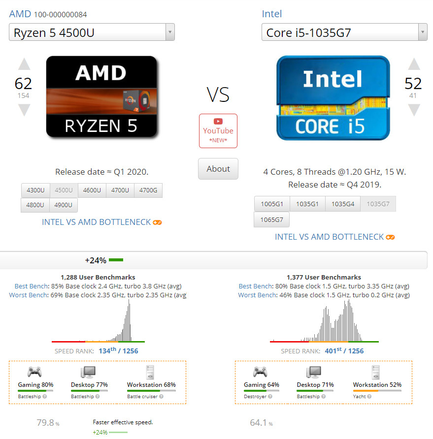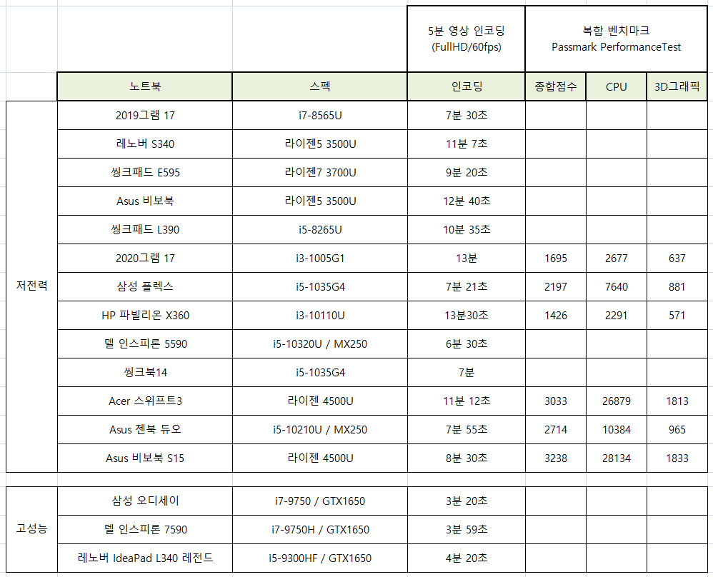 AMD 라이젠 4500U가 성능 좋고 발열 처리에서 유리한 것은 사실이지만 어디까지나 저전력 CPU에서의 상대적 비교일 뿐 절대적으로 좋지는 않습니다. 영상편집용 게임용은 아니라는 거죠. "영상 편집과 게임이 저전력 노트북 치고 아주 잘 된다" 이정도로 이해하시면 좋습니다.