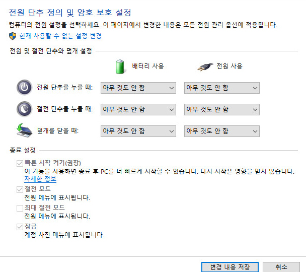 이미 구매한 사용자들은 혹시 모를 상황에 대비해서 전원과 전원 관리에 대한 설정을 모두 아무 것도 안 함으로 해 놓고 절전모드를 완전히 사용하지 않는 것이 좋습니다. 이렇게 설정해 놓으면 최소한 절전모드로 들어 갈 일은 없기 때문에 작업하고 있는 데이터가 날라 갈 일은 없죠. Asus에서 관련 된 업데이트 소식이 있을 때 까지는 이렇게 설정해 놓는 것을 권장합니다.