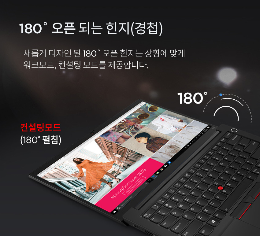 튼튼한 힌지 내구성으로 인한 180도 오픈 역시 씽크패드의 자랑입니다. 사실 씽크패드의 튼튼한 힌지는 T시리즈. X시리즈와 같은 고급형 라인에만 적용되지만 제가 사용해 본 결과 E시리즈의 힌지 역시 일반적인 다른 제조사의 보급형 라인들 보다 훨씬 견고하고 내구성이 좋습니다.