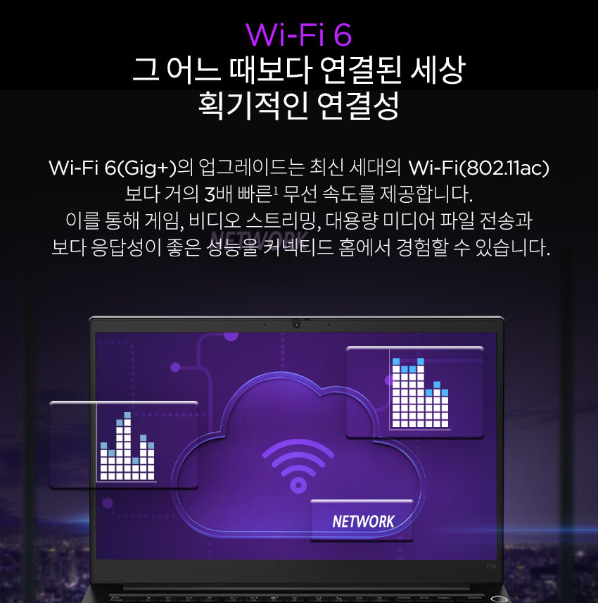 와이파이6 지원합니다. 확실히 같은 브랜드지만 아이디어패드와 가는 길이 다르다는 것을 알 수 있죠.