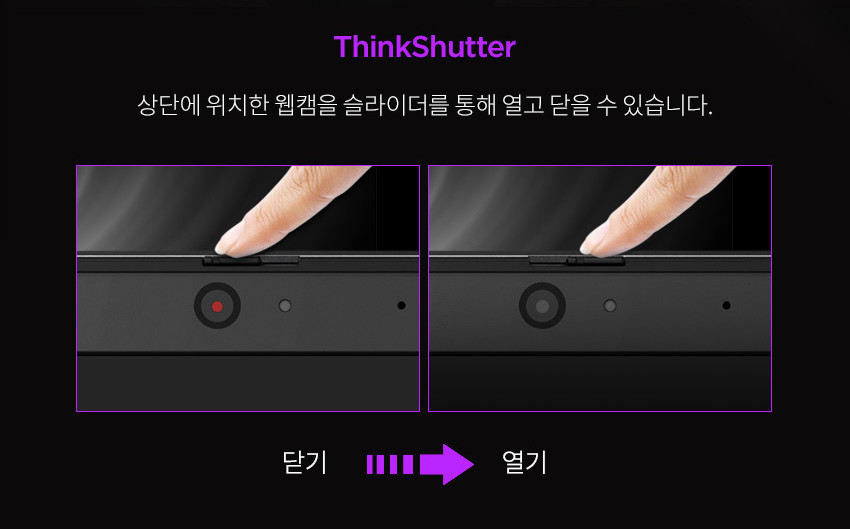 웹캠을 물리적으로 차단할 수 있는 씽크셔터 들어가 있습니다.