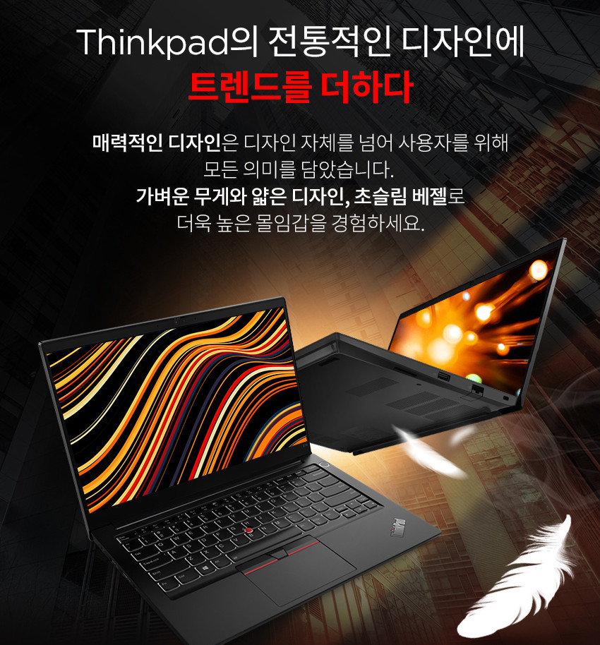 씽크패드는 항상 그러하 듯 전통의 디자인을 그대로 따릅니다. 트렌드를 더했다는 말은 그냥 좀 더 얇아지고 가벼워졌다는 의미 일 뿐 디자인의 변화는 없습니다.
