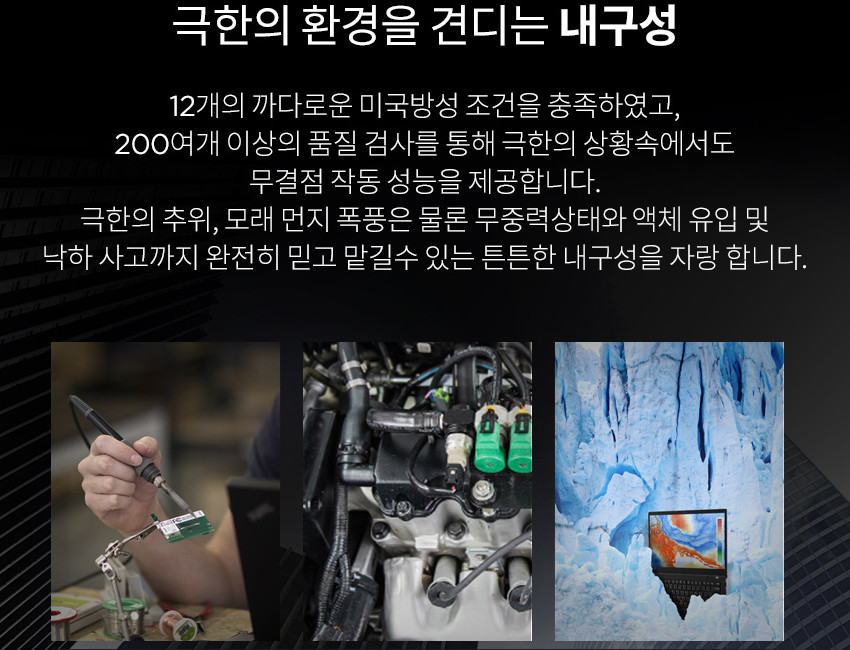 씽크패드의 아이덴티티는 높은 내구성입니다. 노트북이 조금 크고 무겁지만 용서가 되는 이유이기도 하죠. 어떠한 상황에서도 노트북에 들어있는 내 중요한 정보를 지켜 줄 수 있다는 믿음이 씽크패드를 비즈니스 노트북의 최강자리로 올려 놓았습니다. E시리즈가 보급형이지만 씽크패드는 씽크패드입니다. 역시나 좋은 내구성을 자랑합니다. 하지만 모든 사용자들이 높은 내구성의 노트북이 필요하지 않죠. 내구성 보다 휴대성이 중요하다면 씽크패드는 절대 좋은 선택이 아닙니다.