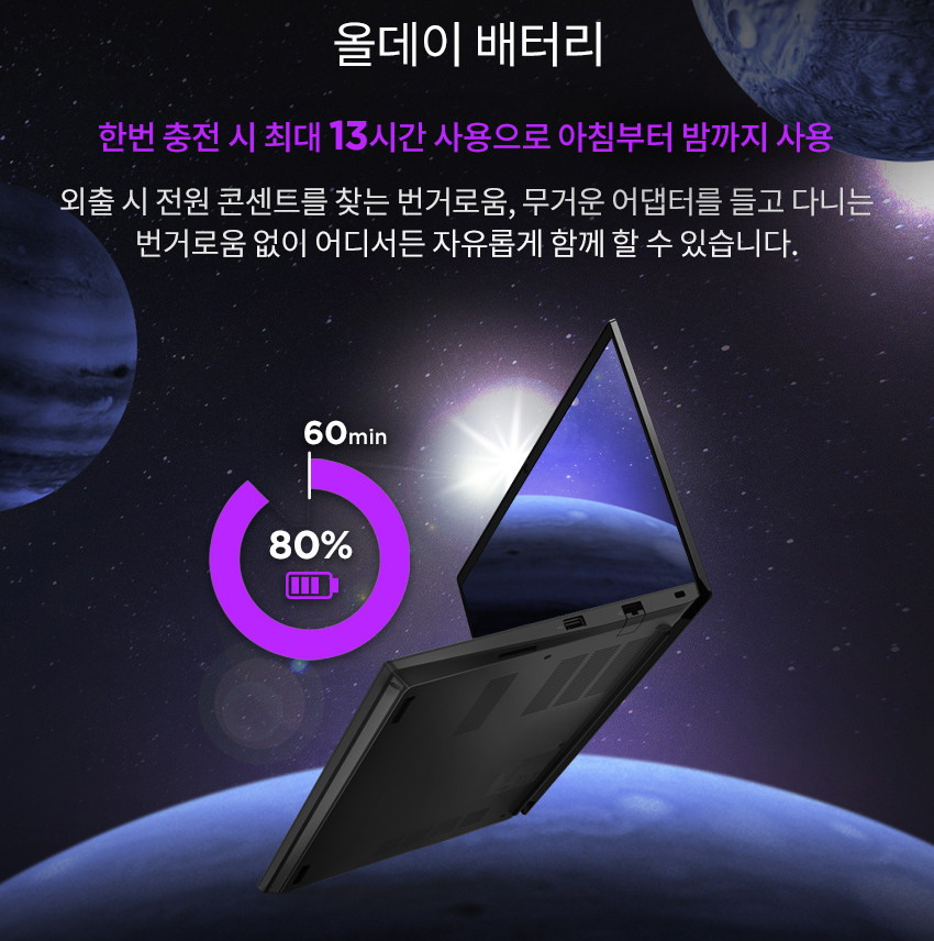45Wh의 배터리로 큰 용량은 아니지만 데일리 노트북으로 사용하기에 부족함은 없습니다.