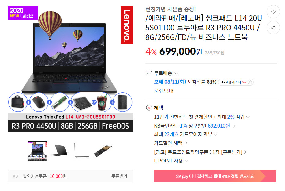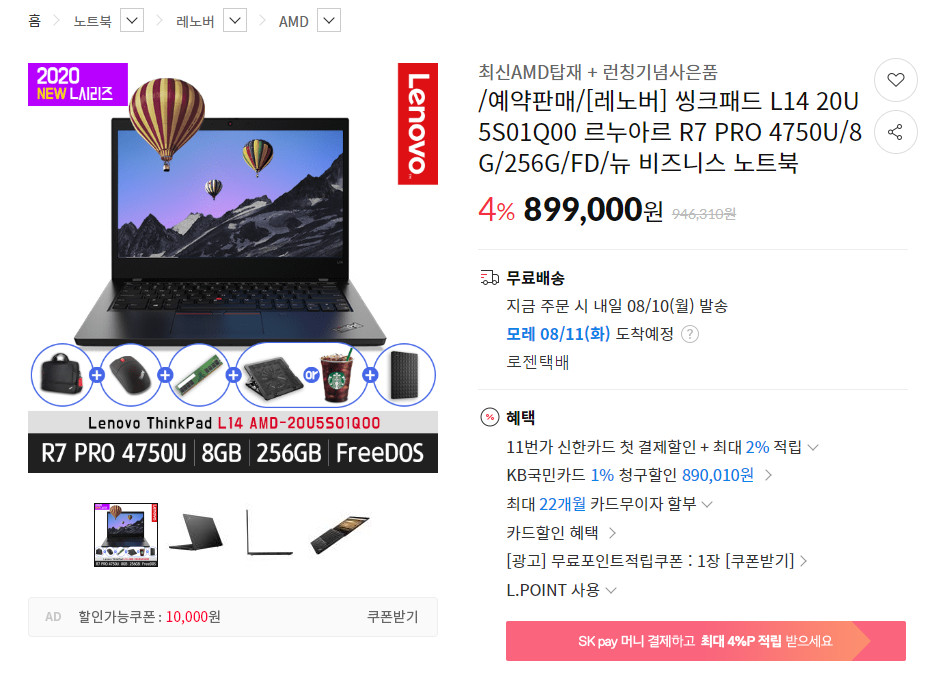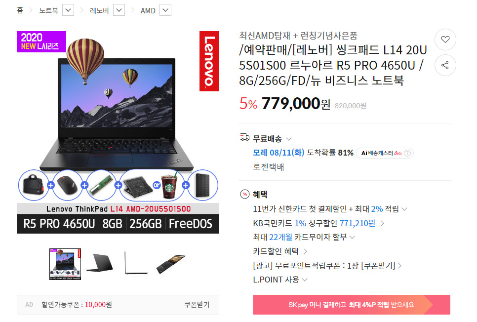 레노버 씽크패드 L14의 중간 CPU등급인 4650U 모델의 시작 가격은 램8GB에 용량 256GB 기준 78만원 입니다. 제가 씽크패드 매니아라서 그런지는 몰라도. 제 기준에는 저렴해 보입니다. 물론 단점들도 많으니 꼼꼼하게 체크해보세요.