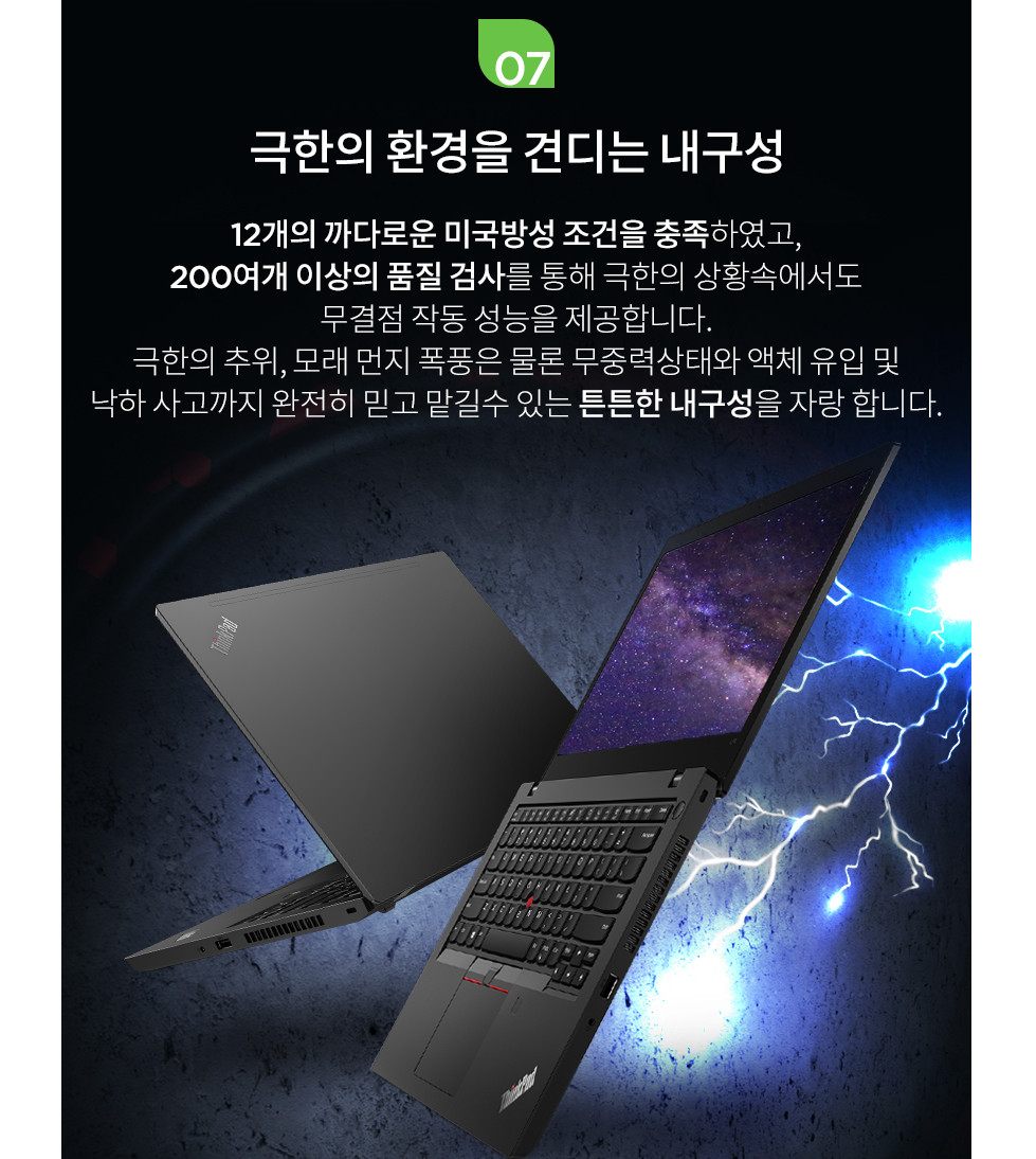 제가 보통 다른 노트북들의 상세페이지 분석을 할 때 가장 많이 팔리는 15.6인치 기준으로 보지만, 씽크패드는 울트라나브 키보드의 사용성이 중요한 노트북이기 때문에 그 키보드 사용성을 최대한으로 올릴 수 있는 14인치 기준으로 리뷰하겠습니다. 15.6인치는 너무 크고 무거워서 개인적으로 추천하지 않습니다.