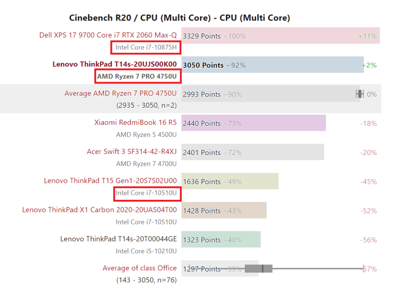 동급CPU라고 말할 수 있는 인텔 i7-10510U에 거의 2배에 달하는 점수가 나왔고, 인텔의 i7 고성능 CPU와 큰 차이가 없습니다. 물론 동일한 냉각 시스템 조건으로 테스트하면 이것보다는 더 벌어질 수 있지만 그럼에도 인텔 상위급 고성능 CPU와 저전력 CPU의 성능차이가 이정도 라는 것은 다소 충격적이죠.