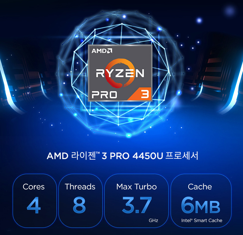 라이젠7 pro모델인 4750U만 성능이 좋은 것이 아닌, 라이젠3 Pro 4450U, 라이젠5 Pro 4650U 모두 가격대비 성능은 최고라고 볼 수 있습니다. 휴대용 노트북인 만큼 배터리 모드에서의 전력 제한과 실제 사용시간이 중요하겠지만 현제로써 제가 보기에 CPU에 대한 특별한 단점은 없어 보입니다.