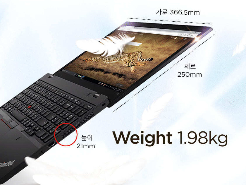 참고로 15.6인치 모델은 무게 2kg에 가깝고, 두께는 2cm 조금 넘습니다. 이정도면 게이밍 노트북 사이즈로도 볼 수 있어요. 아무리 12단계의 군사 등급 테스트를 통과했다 해도 절대 용서되지 않는 사이즈와 무게이고 여러분들이 씽크패드 보급형라인을 싫어하는 이유이기도 합니다.